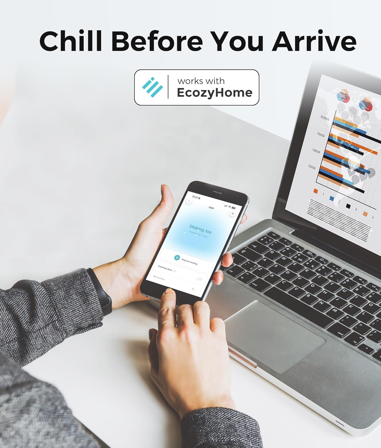 - Smart Ice Control with the App: Use the EcozyHome app to make ice control easy β start, stop, or schedule ice production to suit your day (Supports 2.4GHz Wi-Fi only)