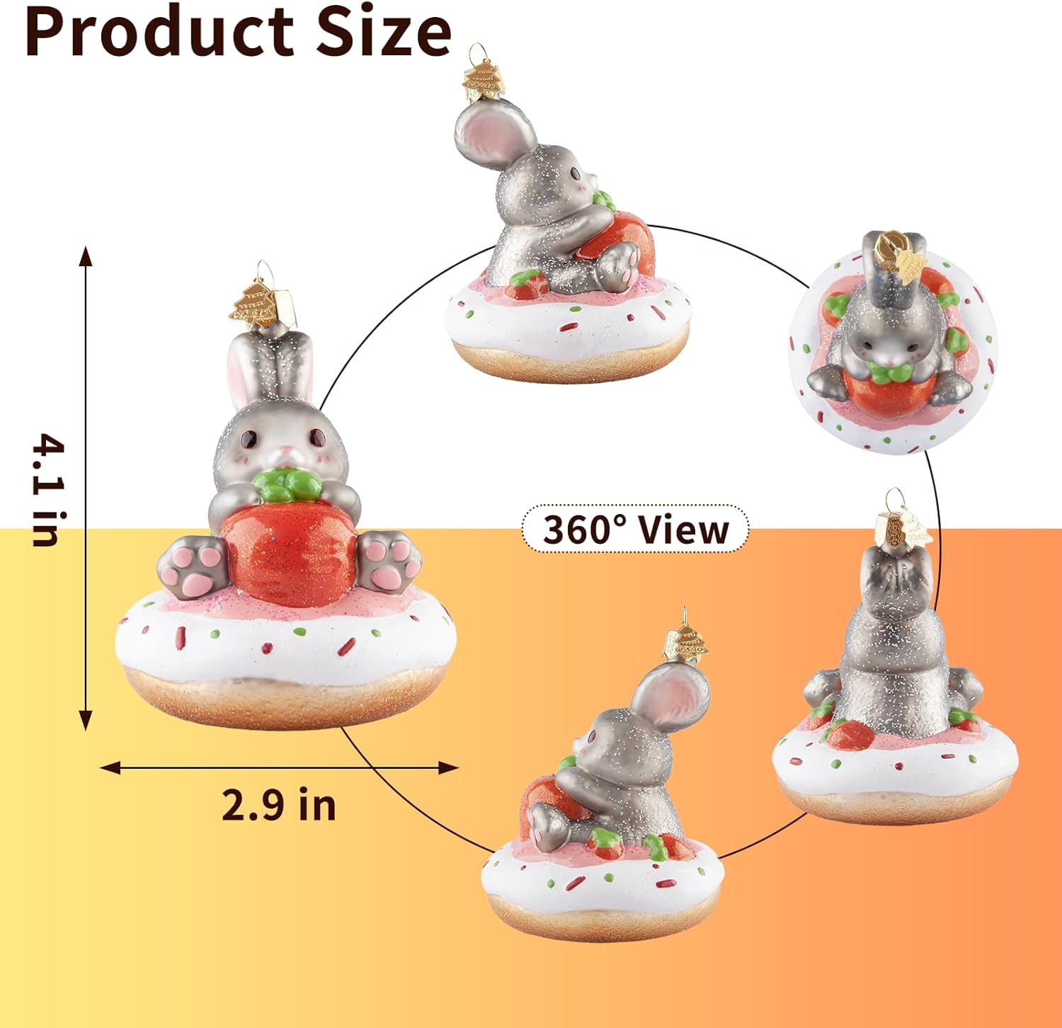 - Cute & Unique Design: Hand-blown glass ornament adopts the image of a cute little bunny, who sits on a delicious donut and holds a big carrot in its arms. It is cute and greedy. The whole is hand-painted, with exquisite craftsmanship, delicate and vivid image depiction. You can decorate any place you want to decorate, and believe it can be integrated well