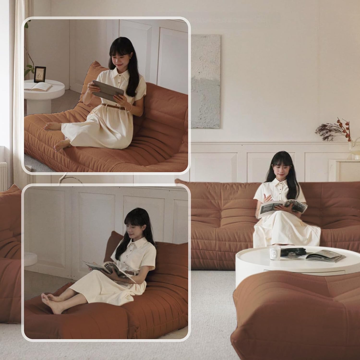 Luxury Sofa Couch Chair, Lazy Floor Seating, Fireside Bean Bag Chair, Ergonomic Tatami Sofa Lounger for Living Room, Bedroom, Office, Loveseat, Brown