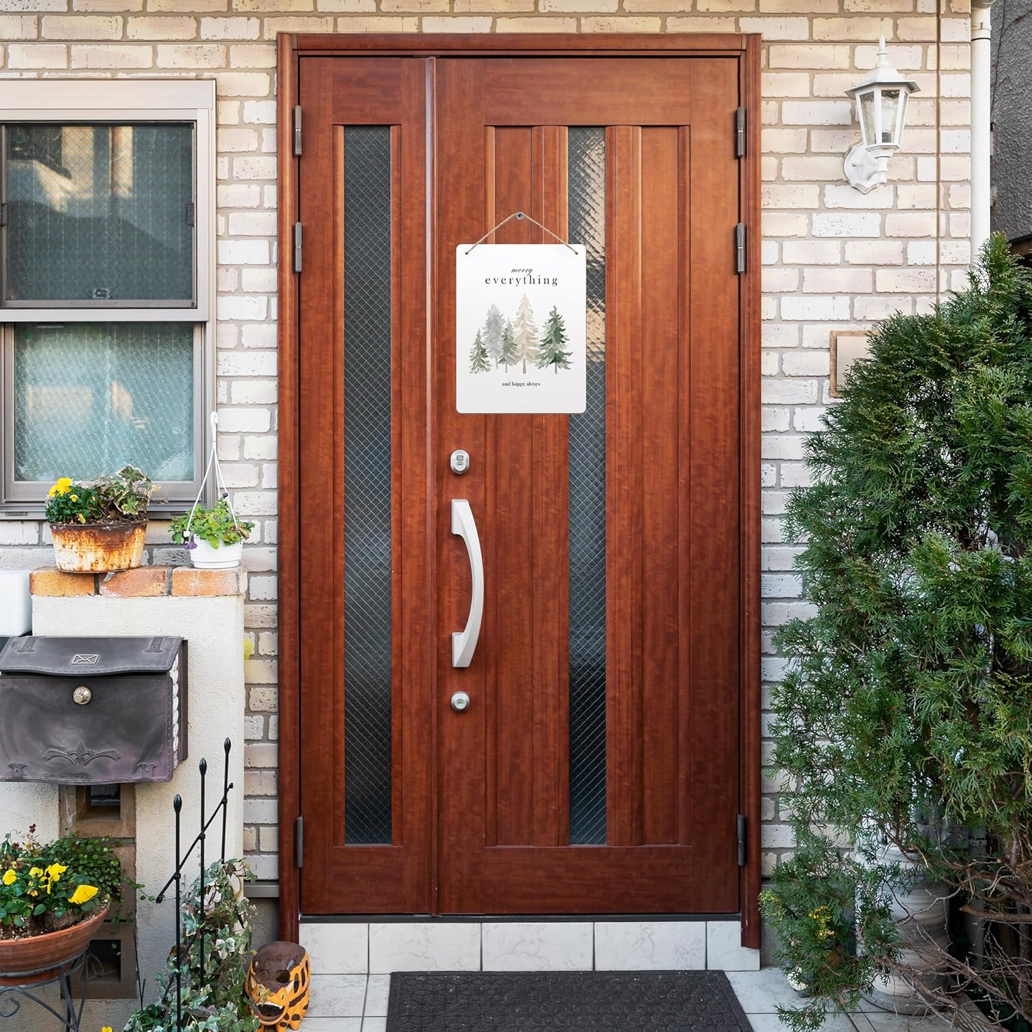 Pine Tree Winter Hanging Wooden Signs 10x8, Welcome Winter Signs, Winter Tree Wall Decor, Merry Everything and Happy Always Winter Home Room Office Hanging Wall Decor