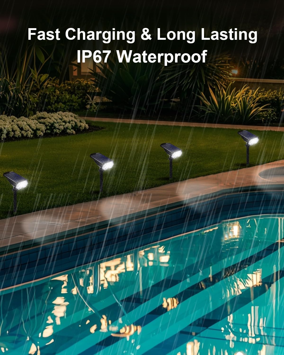 - ๐ฆ๐๐๐ฏ๐๐ง๐๐๐ ๐๐๐ญ๐๐ซ ๐๐๐ฌ๐ข๐ฌ๐ญ๐๐ง๐๐, ๐๐ง๐๐ฎ๐ซ๐ข๐ง๐ ๐๐ญ๐ซ๐๐ง๐ ๐ญ๐ก๏ผThe solar powered spotlights feature an integrated, exquisite design that outperforms split-type solar lights, especially in harsh weather conditions like storms, showcasing superior waterproof capabilities. Crafted with durable ABS material and equipped with a 2000mAh high-capacity battery, our fixtures provide a long-lasting and reliable lighting experience for your outdoor spaces.