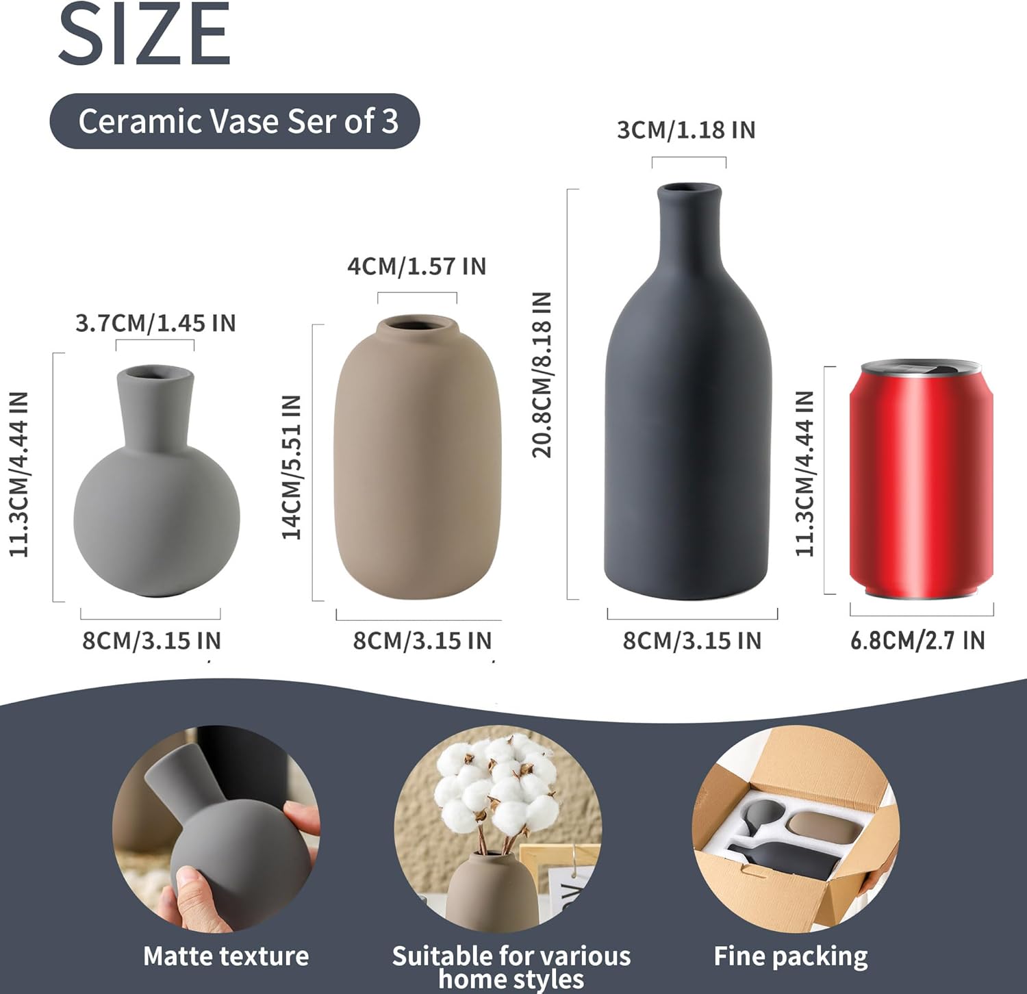 - 【Home Décor Ceramic Vases】More than vases, they are wonderful home decor. This set of ceramic vases is perfect for artificial flowers or fresh flowers and plants, can be placed individually or in combination, as a neutral home decor, living room decoration, bedroom decor,tabletop decoration, bookshelf decoration, storage rack decoration, mantelpiece decoration, entryway decor,dining room decor, minimalist side table decor,etc.
