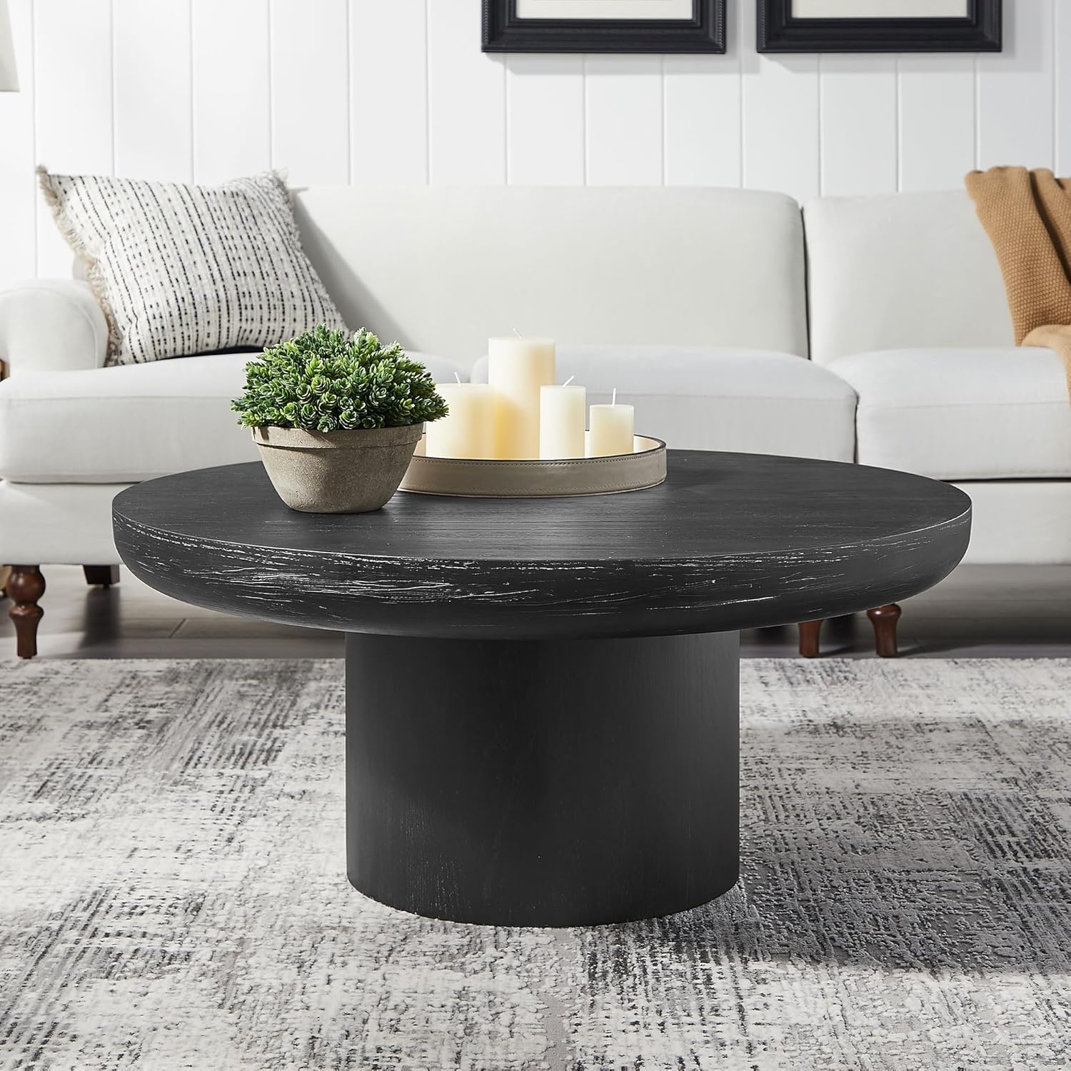 WILLIAMSPACE 35.98" Round Coffee Table with Cylindrical Base, Modern Wood Drum Center Table, Accent Side End Table for Living Room Apartment, φ35.98"*15.98"H (Black)