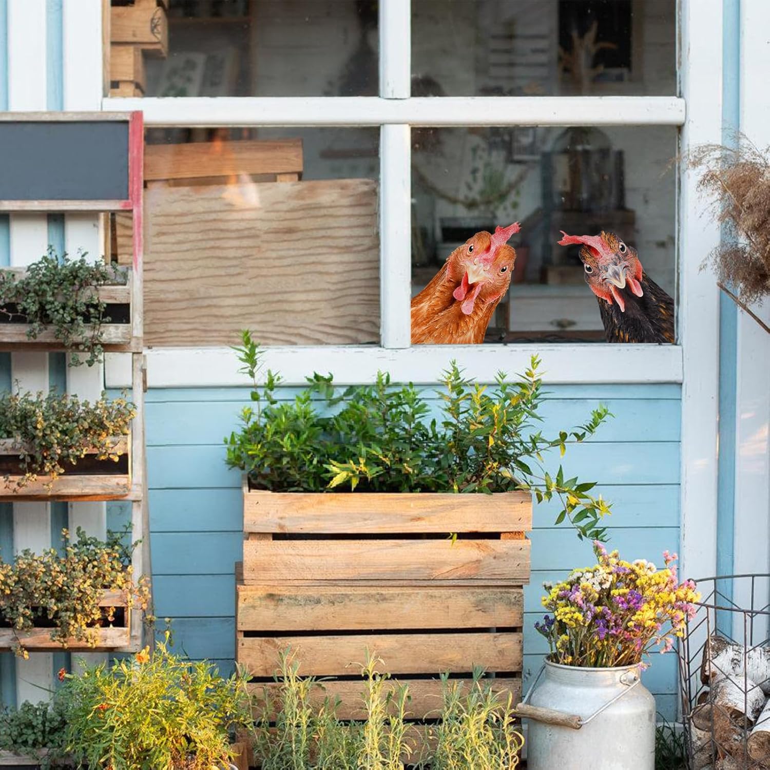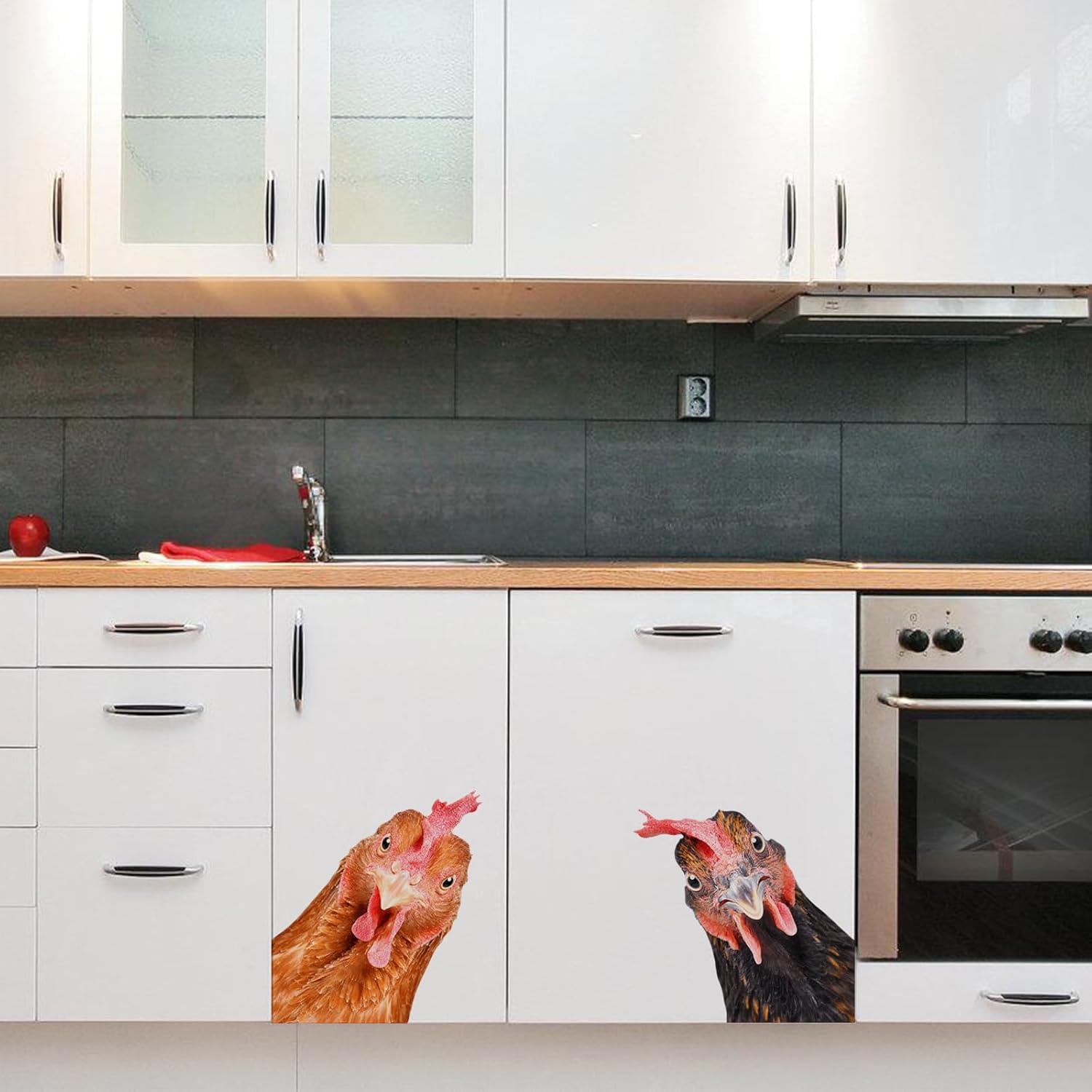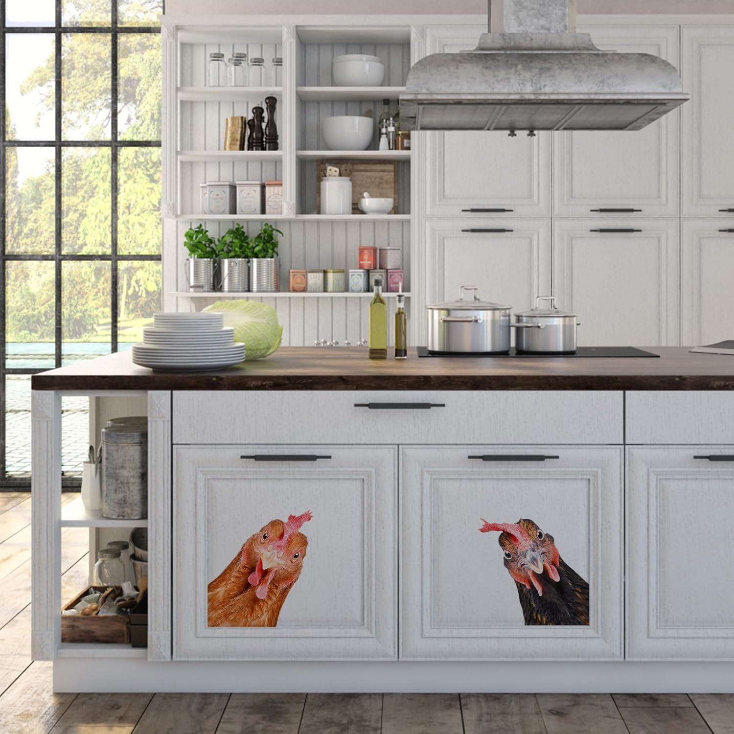 Funny Chicken Wall Decals - Peel & Stick - 2 Hens Head Window Cling - Cute Chicken Window Stickers - Gift Decal
