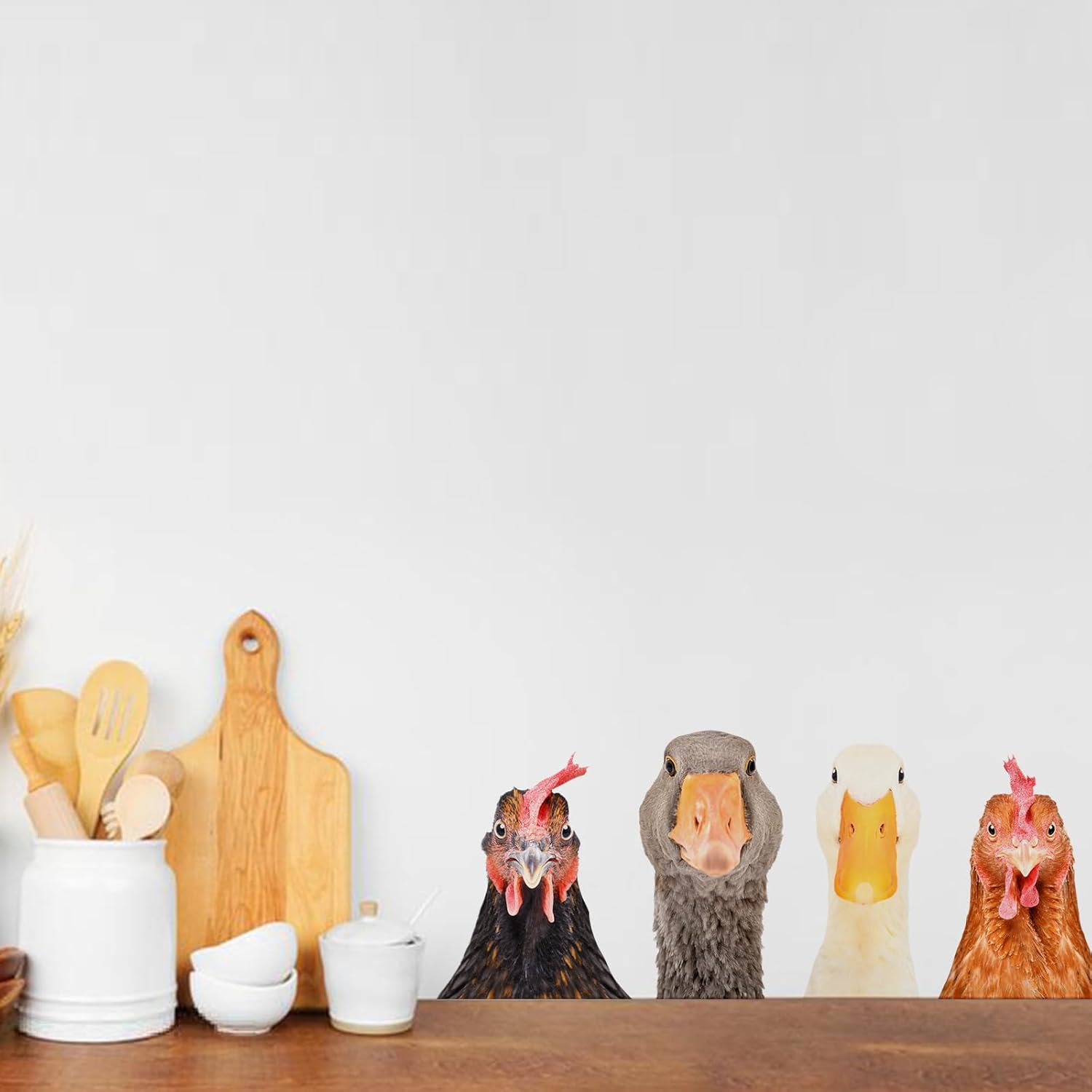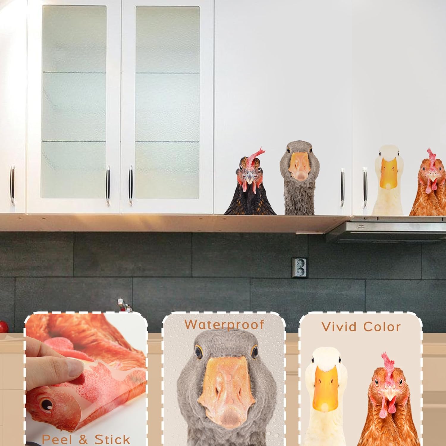 Funny Animal Windows Stickers Decor - 2 Hens Head & 2 Goose Head Window Cling Removable - Cute Animals Window Decals Peel and Stick - Funny Animals Wall Decor for Farmhouse Kitchen Door Refrigerator
