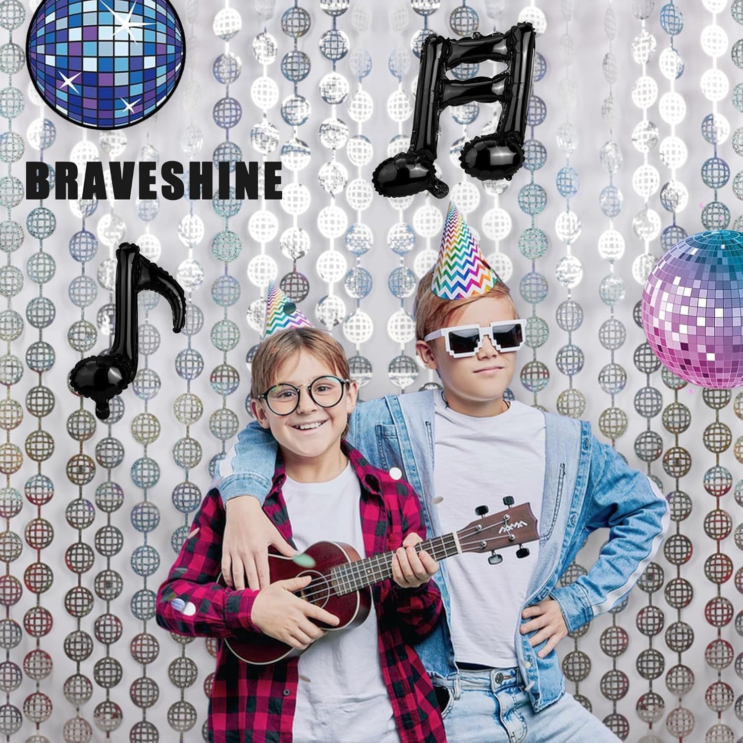 BRAVESHINE Hanging Balls Party Streamers Backdrop - 2 Pack Silver Tinsel Foil Curtain Photo Fringe Backdrop for 70s 80s Party, Birthdays, Bachelorette, Engagement, Music, Dance,New Years Decorations
