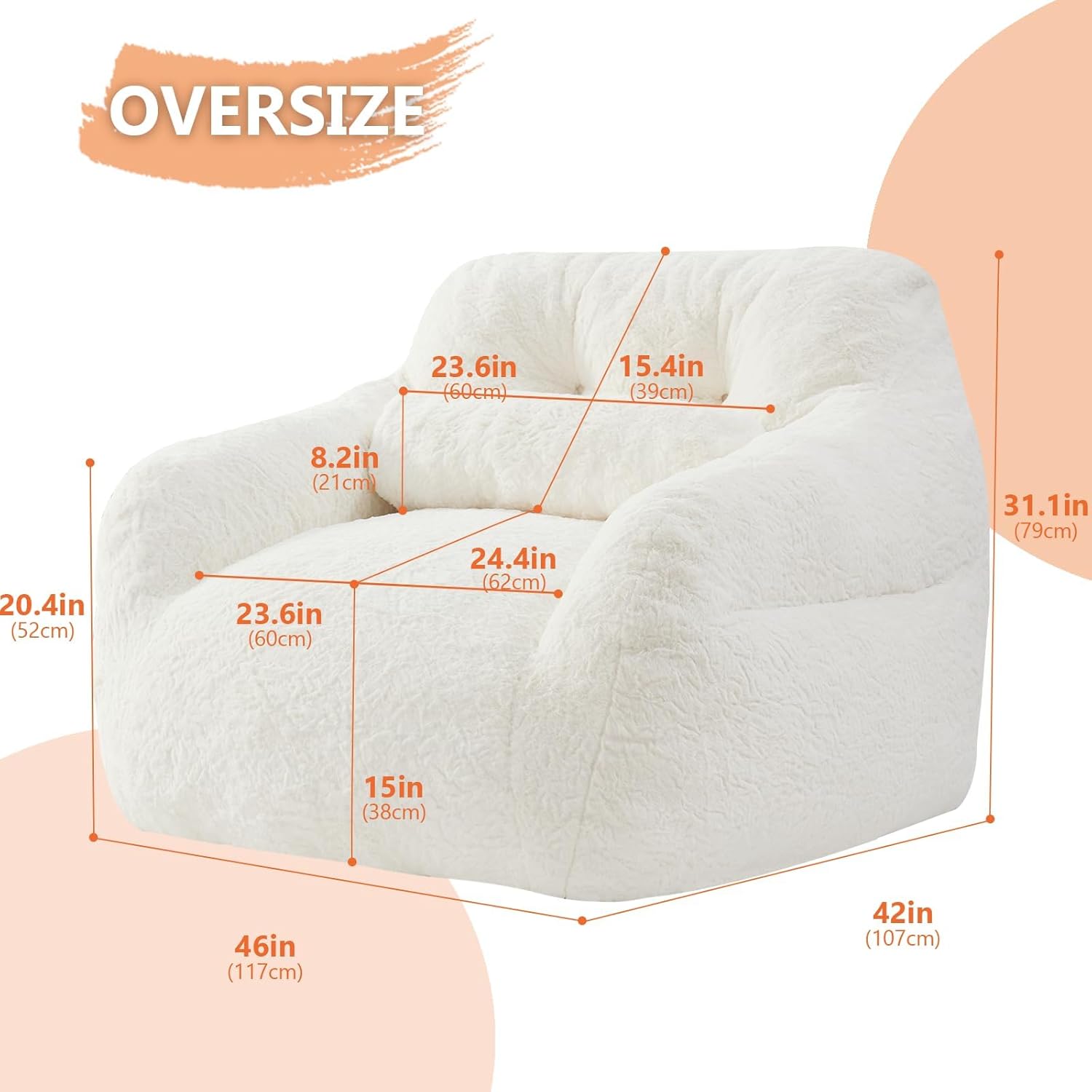 - ăCOMFORTABLE and SOFT FABRICă: Plush fluffy bean bag chair sofa is made of faux fur fabric, which is soft and delicate. The fuzzy beanbag chair is stuffed high-density sponge, high quality and high resilience. Soft material and full filling, both to ensure a good comfort feeling, and also provide the optimal support.