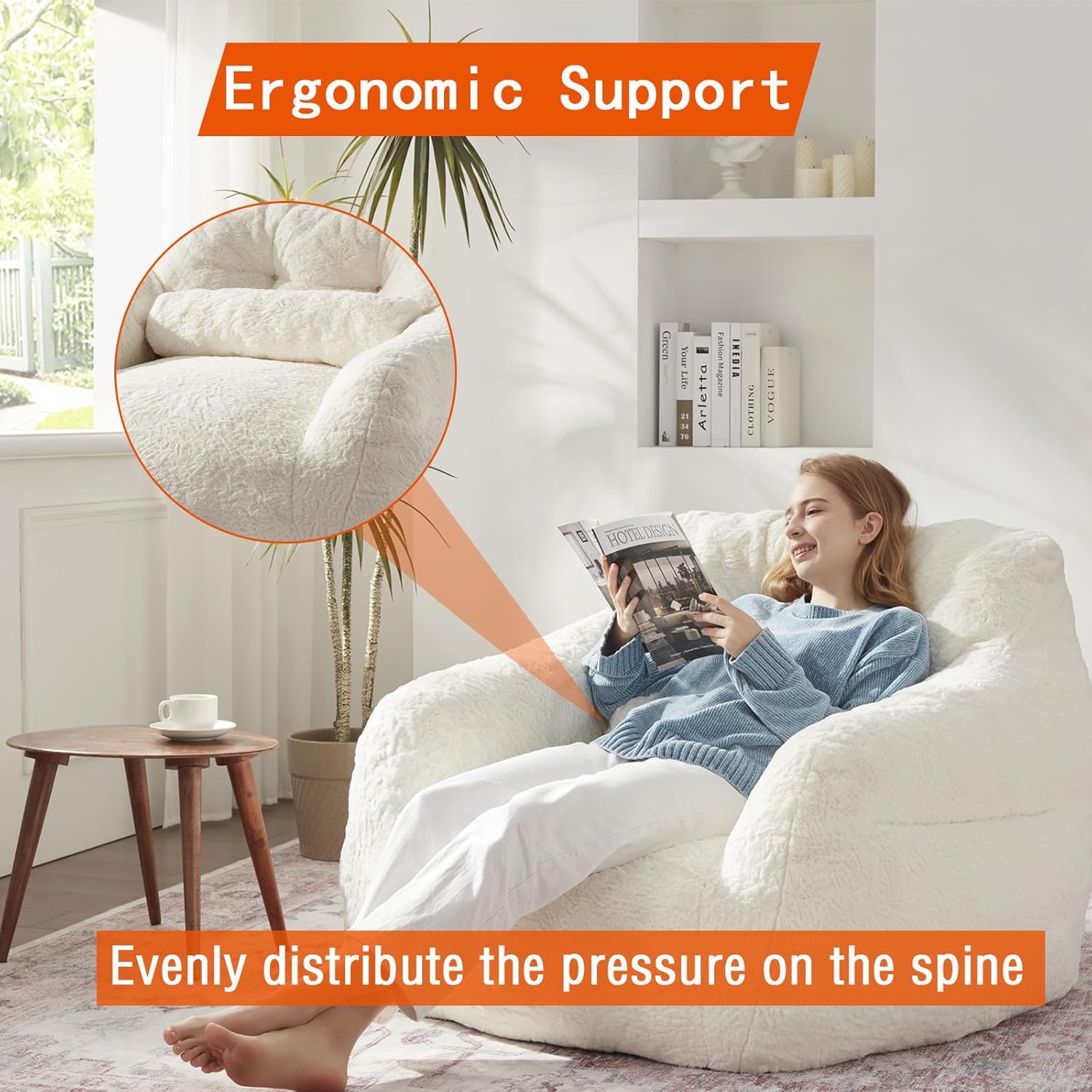 Bean Bag Chair for Adults with Pillow,Oversized Bean Bag Couch Chairs for Adults,Giant Lazy Couch Sofa Chairs with Filler,Large Reading Chair for Living Room Bedroom,White