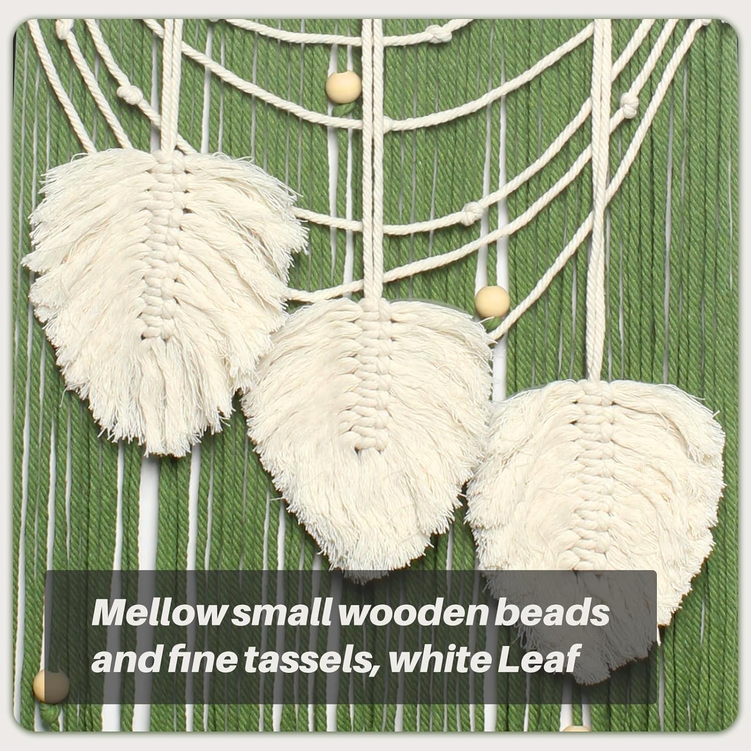 JONKASIPA Macrame Wall Hanging Bohemian Handmade Leaf Feather Wall Art Decorations, Green fringe Chic Home Decor for Apartment Dorm Living Room Bedroom