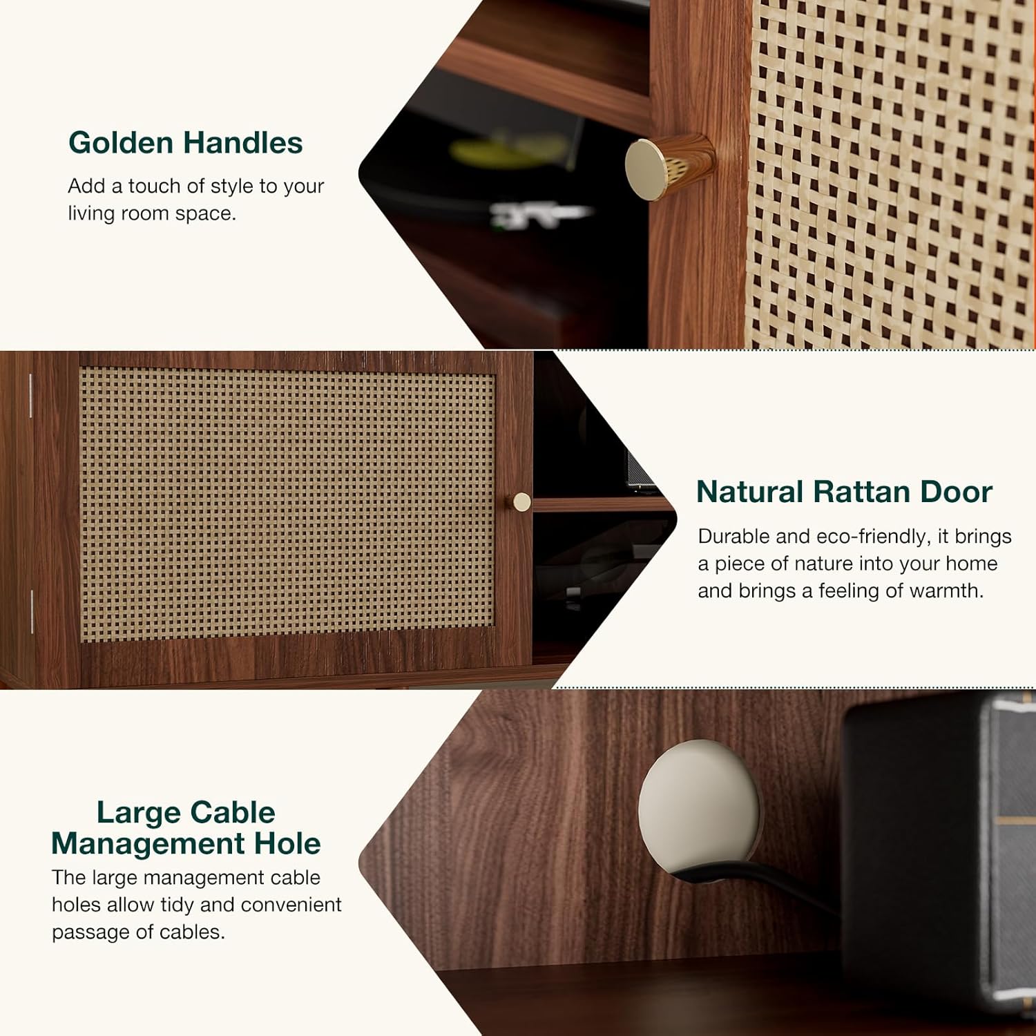 - TV COMPANION: Rattan-decorated doors match the natural surface, this TV stand with storage blends modern and boho style. If your living room is calling for a new upgrade with storage, this TV stand is a great addition