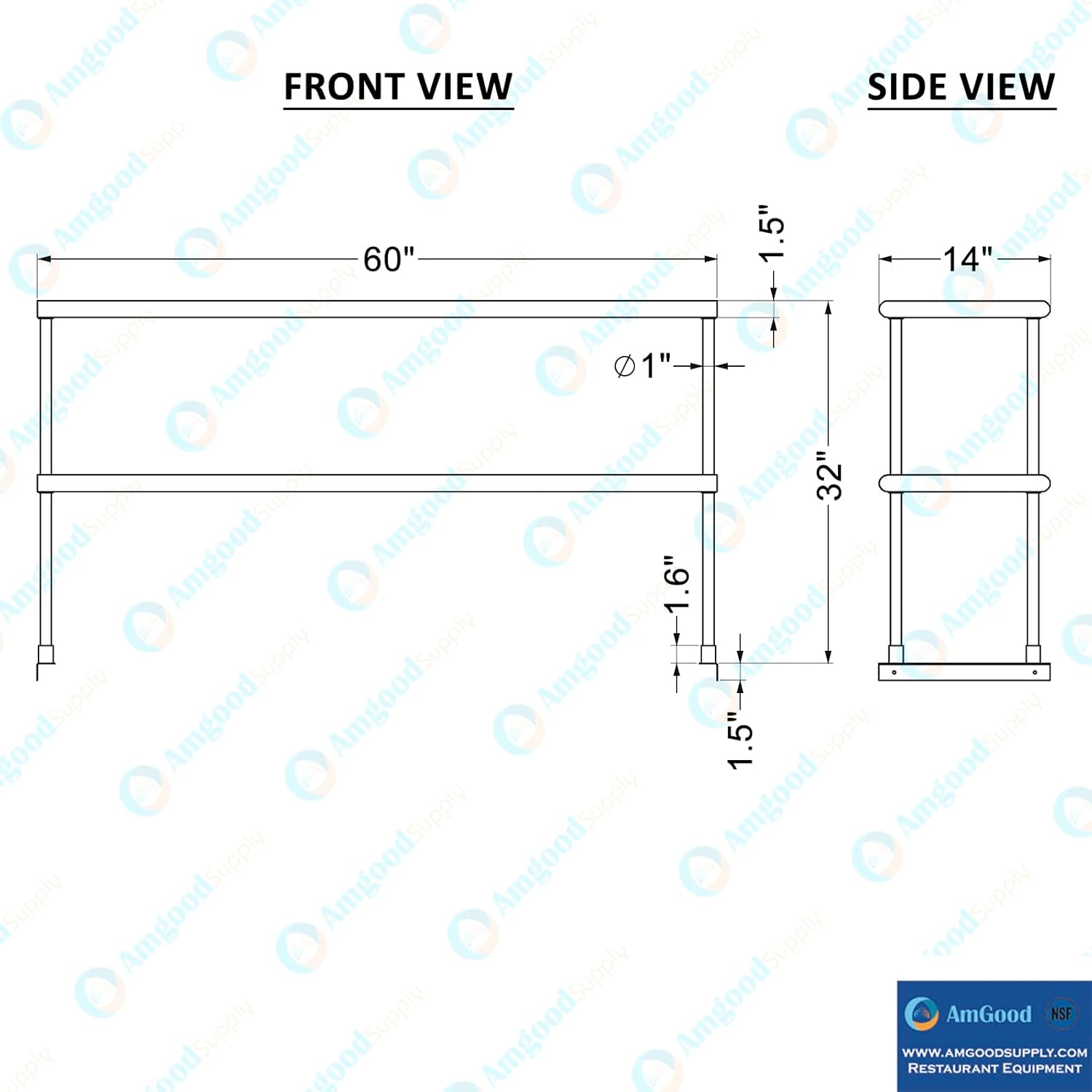 - 14 in. x 60 in. x 32 in. double-tier overshelf. Each tier holds up to 300 Lbs, providing robust support for heavy kitchen essentials.