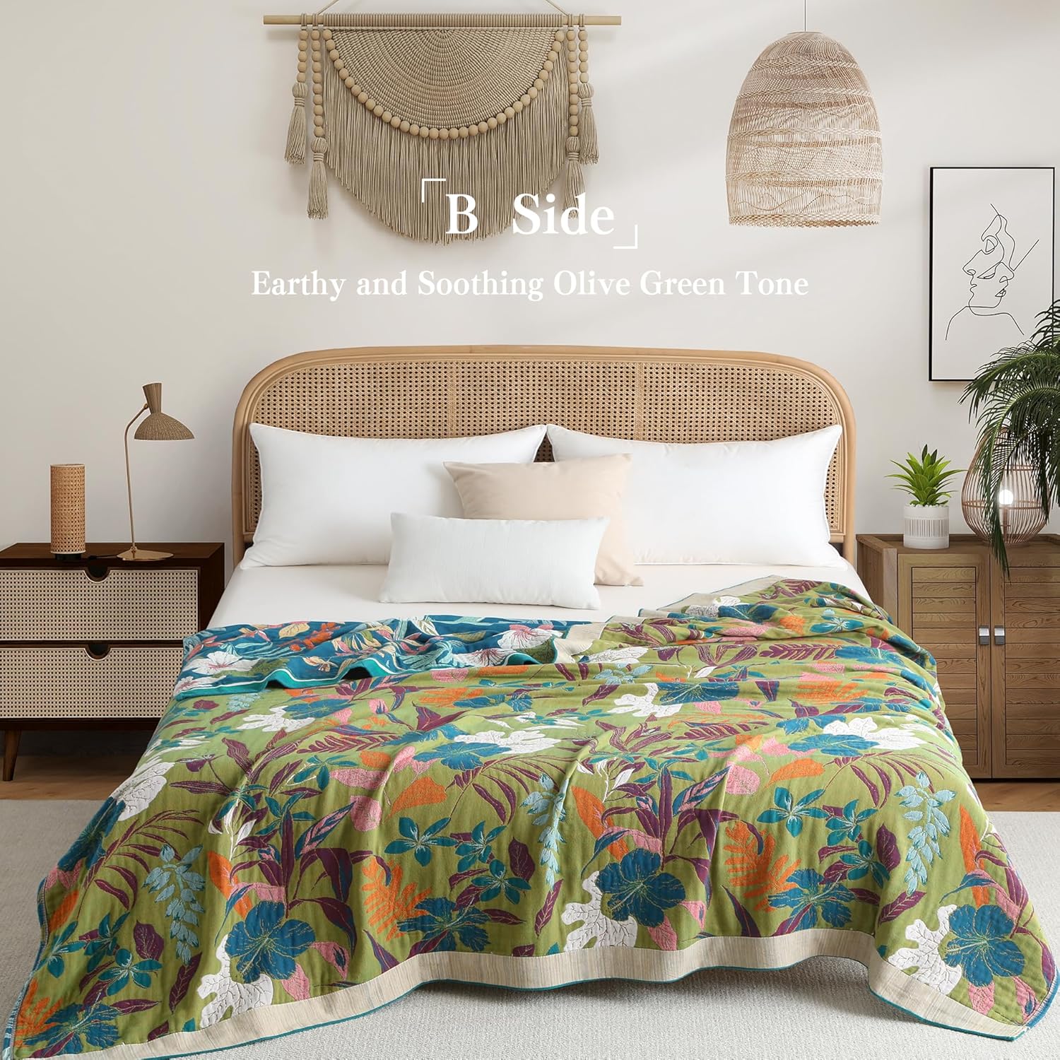 - Pure Cotton Muslin: Elevate your relaxation experience with this luxurious 100% pure cotton muslin blanket. Its ultra-soft, breathable, and lightweight fabric delivers a cloud-like sensation, offering the perfect balance of warmth and comfort. The gentle gauze texture ensures a cozy, soothing feel, whether you're unwinding at home or drifting into sleep. Designed for sensitive skin, it's hypoallergenic, providing a safe and serene comfort you can enjoy every day.