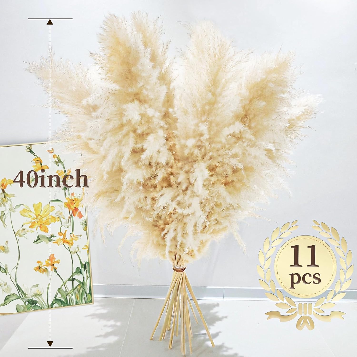 40" 11 PCS Dried Pampas Grass Decor Tall,Large Natural Beige pompas Grass,Tall Pampas Grass for Floor Vase,Wedding,Party,Farmhouse,Boho Home Decor,and Creating a Bohemian Ambiance