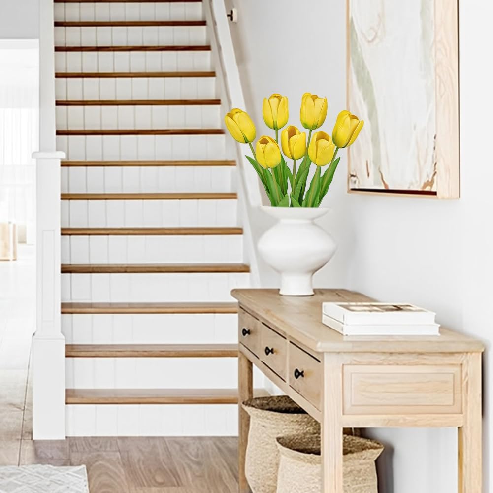 - LIFELIKE REAL TOUCH TULIPS – ULTRA-REALISTIC & VIBRANT: Crafted from premium soft-touch PU material, these artificial tulips look and feel just like fresh-cut flowers. With their realistic petals, natural-looking stems, and vivid colors, they bring a fresh, elegant touch to any home decor, wedding bouquet, or floral arrangement