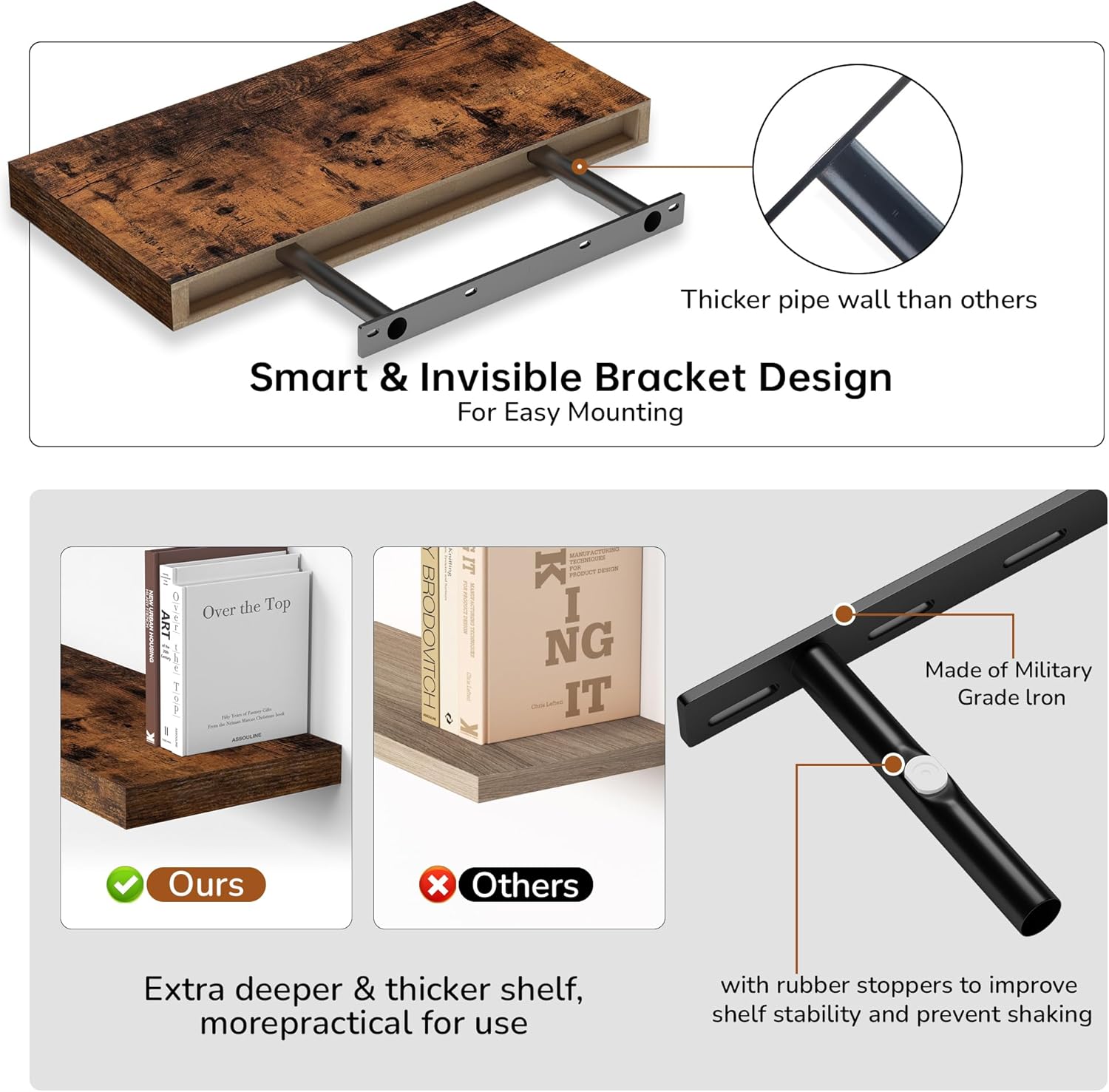 - Extra Deeper & Thicker - Each board measures 16"W x 8"D x 1.5"H. Extra deeper and thicker design in order to bring maximizes storage space and weight capacity, even hold up to 30 lb each. This floating shelf taking up zero square feet, reduces clutter and highlights décor in compact spaces.