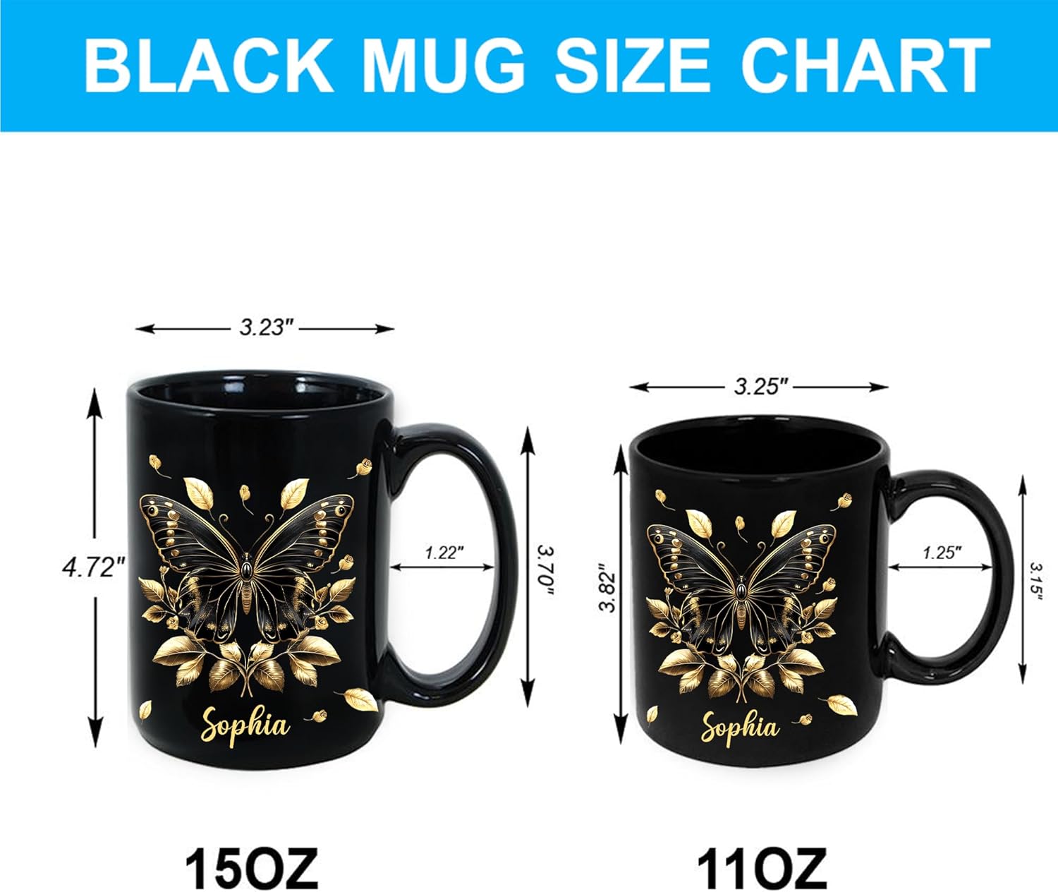 - SIZE ATTENTION: Available in 2 sizes: 11oz & 15oz. 11-ounce: 3.82โ high ร 3.25โ diameter. 15-ounce: 4.72โ high ร 3.23โ diameter. Large, easy-grip handle.