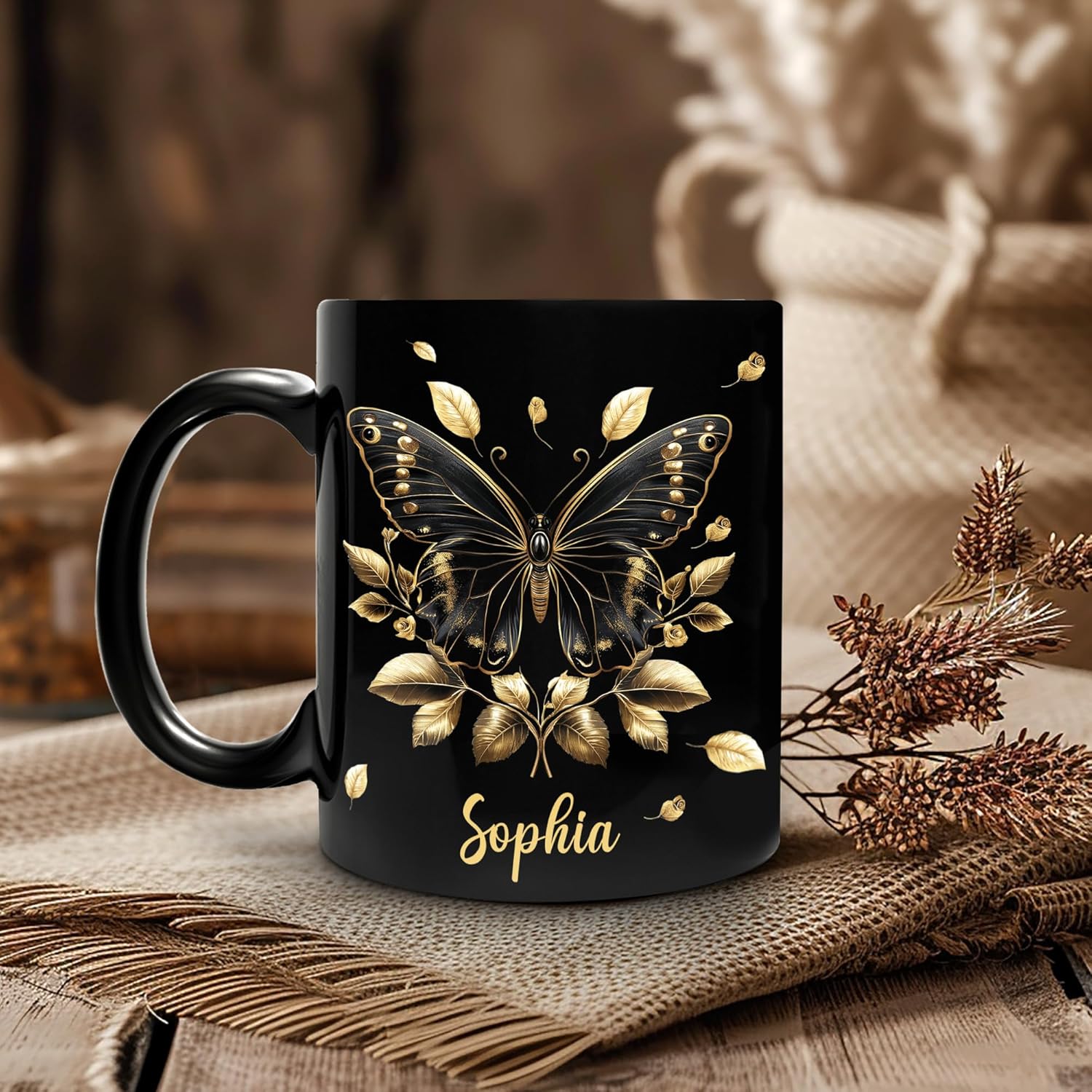 Hyturtle Personalized Yellow Butterfly Mug - Butterfly Gifts For Women Lovers - Animal Gift For Bird Lover Her - Bird Gifts For Mom on Mother Day - Custom Name Coffee Cup Ceramic Mug 11 Oz 15 Oz