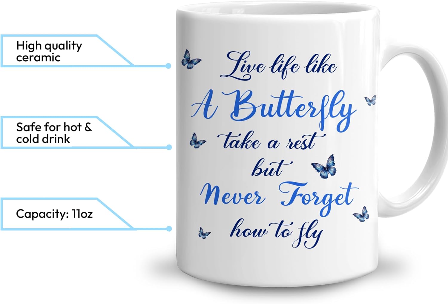 Hyturtle Personalized Inspirational Butterfly Mug - Butterfly Gifts For Women Lovers - Animal Gift For Bird Lover Her - Bird Gifts For Mom on Mother Day - Custom Coffee Cup Ceramic Mug 11 Oz 15 Oz