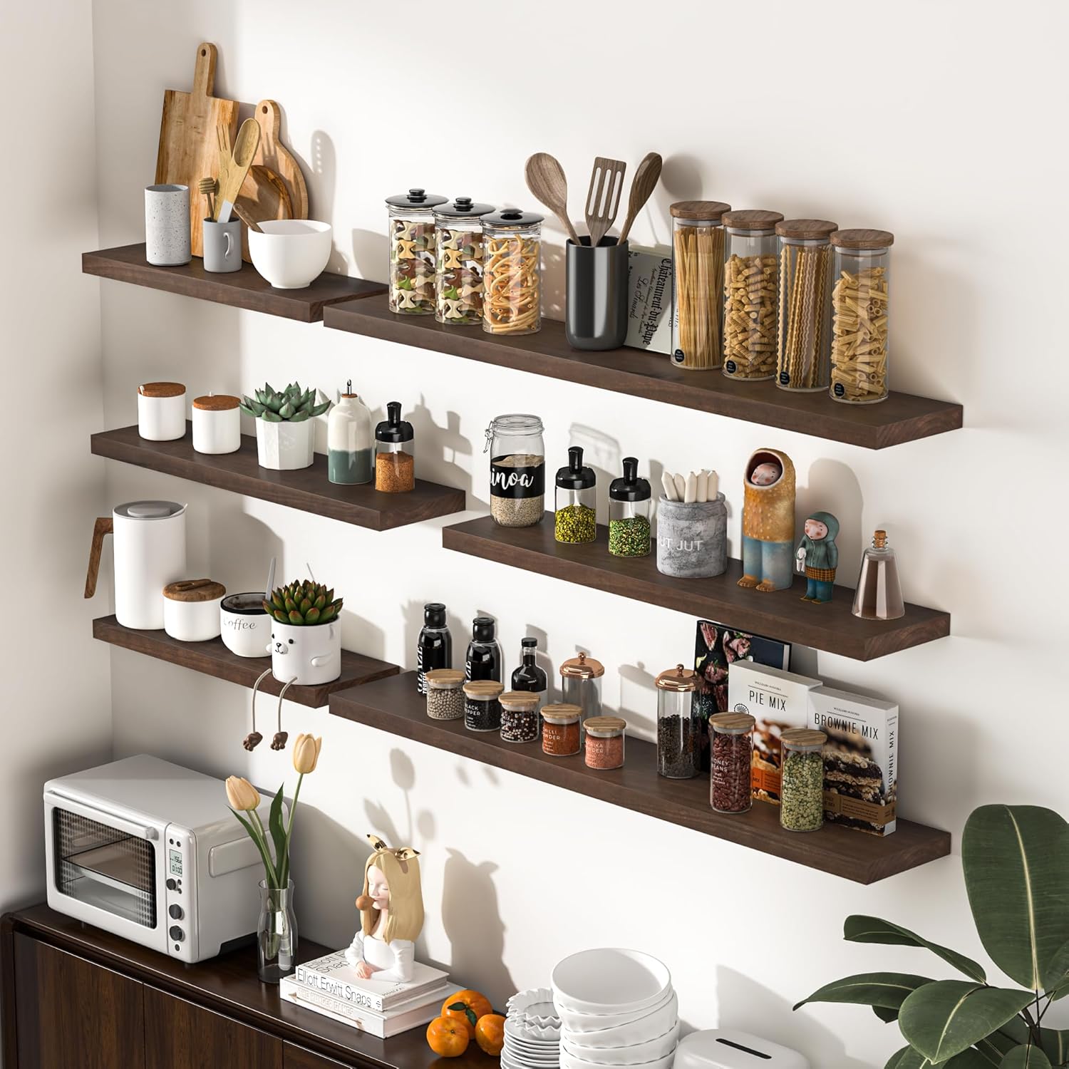 - Multi-scene & Functional - Our wall-mounted shelves are not only aesthetically pleasing but also highly functional, making them an ideal choice for various settings in your home. Use them to showcase your collection, display books, or highlight prized possessions. These shelves are perfect for exhibiting photo frames, small plants, models, or audio equipment in your living room, office, or study.