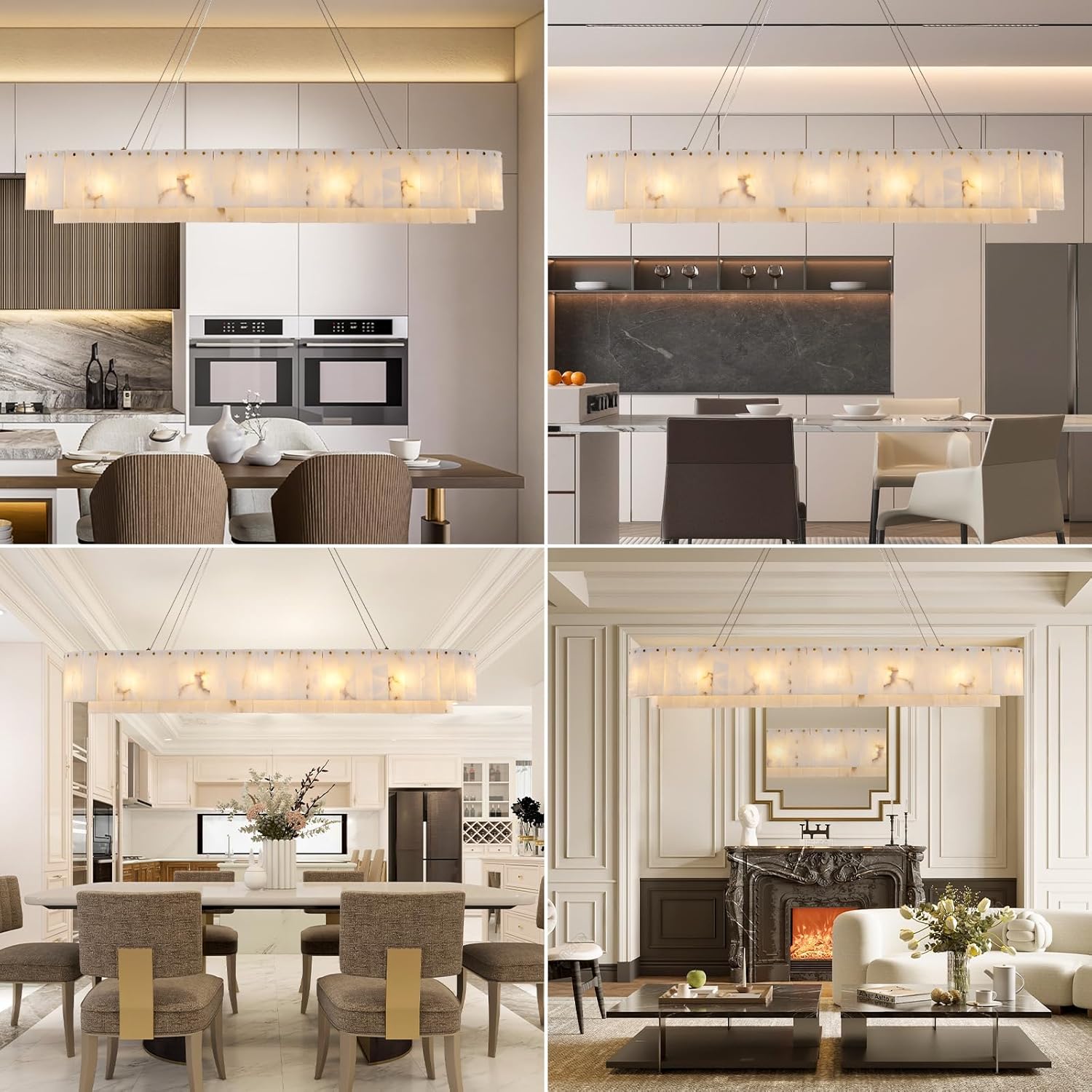 - 【Natural Alabaster and Unique Texture】Our dining room chandelier is made of Spanish alabaster, a natural stone solidified by volcanic lava over millions of years. Each piece is carefully selected and hand-polished. Due to differences in natural materials and craftsmanship, no two pieces are exactly the same. The textures presented vary in depth or brightness, adding a unique beauty.
