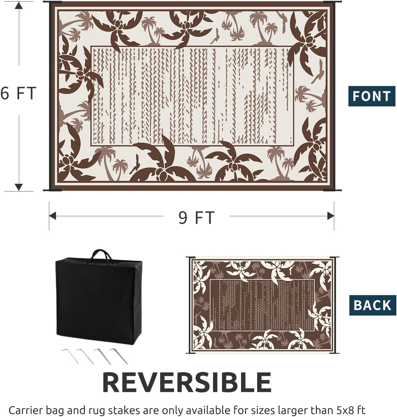 - Reversible Outdoor Rug: Featuring a double-sided tropical coconut tree design in a brown and beige palette, this indoor outdoor rugs bring a relaxing holiday vibe to your outdoor decor. and you can choose both sides to meet your needs, just flip the patio rug to switch patterns.