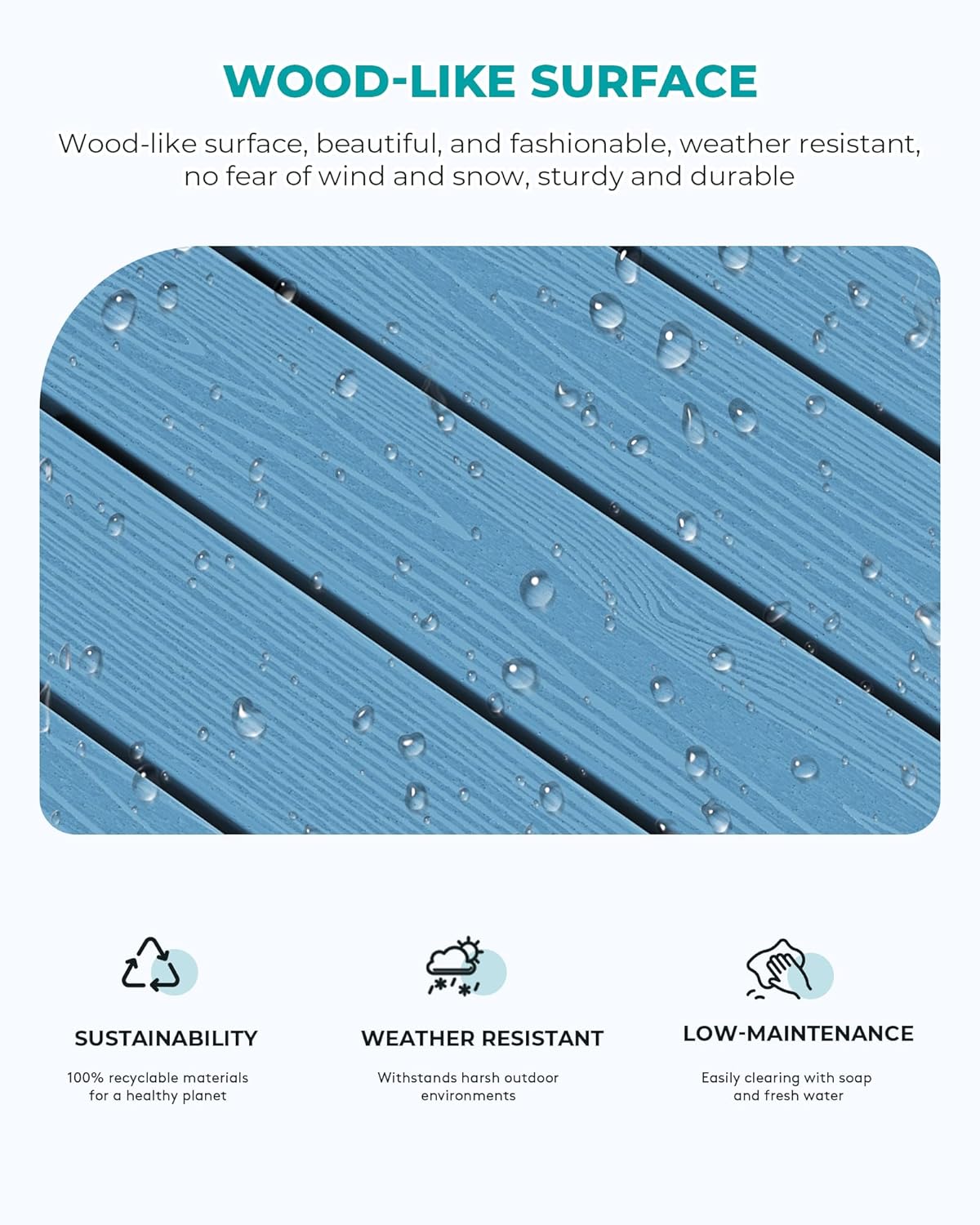 - Wood-like Texture: Offering the aesthetic appeal of wood without the upkeep, the SERWALL HDPE outdoor coffee table features a wood-textured surface that adds an elegant and natural touch to your outdoor decor. allowing you to have an outdoor experience just like real wood without the drawbacks of solid wood.