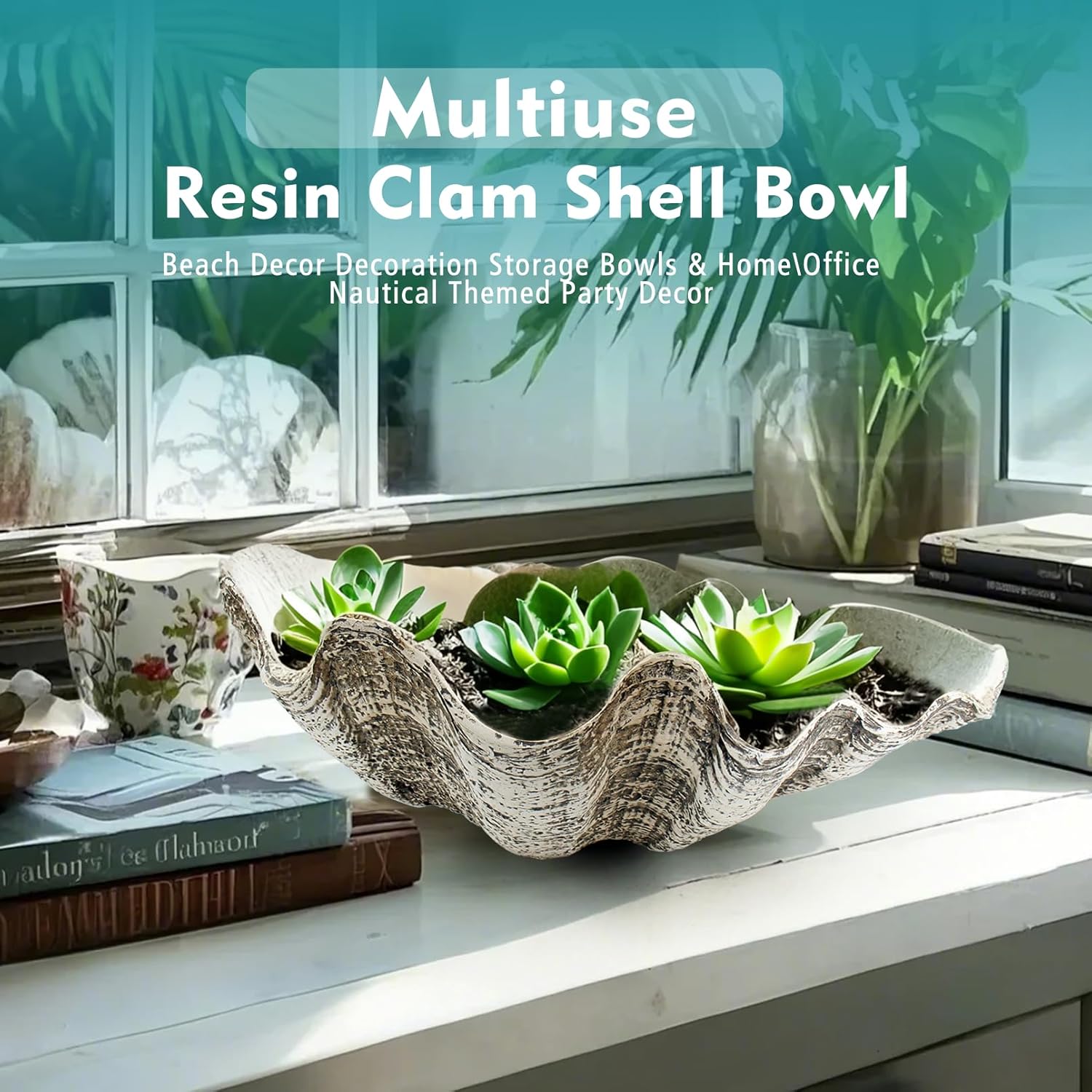 - Size:This Beige and gray Seashell decorative bowls made from 100% solid resin, -3.6" tall, 10.23" wide and 8.6" deep approximately. Clamshell decorative bowls Sufficient for home Bathroom Shelf,Room Console,Coffee table,Office Desk,Window Edges and a perfect idea for beach house decor,occasions for beach themed parties or weddings