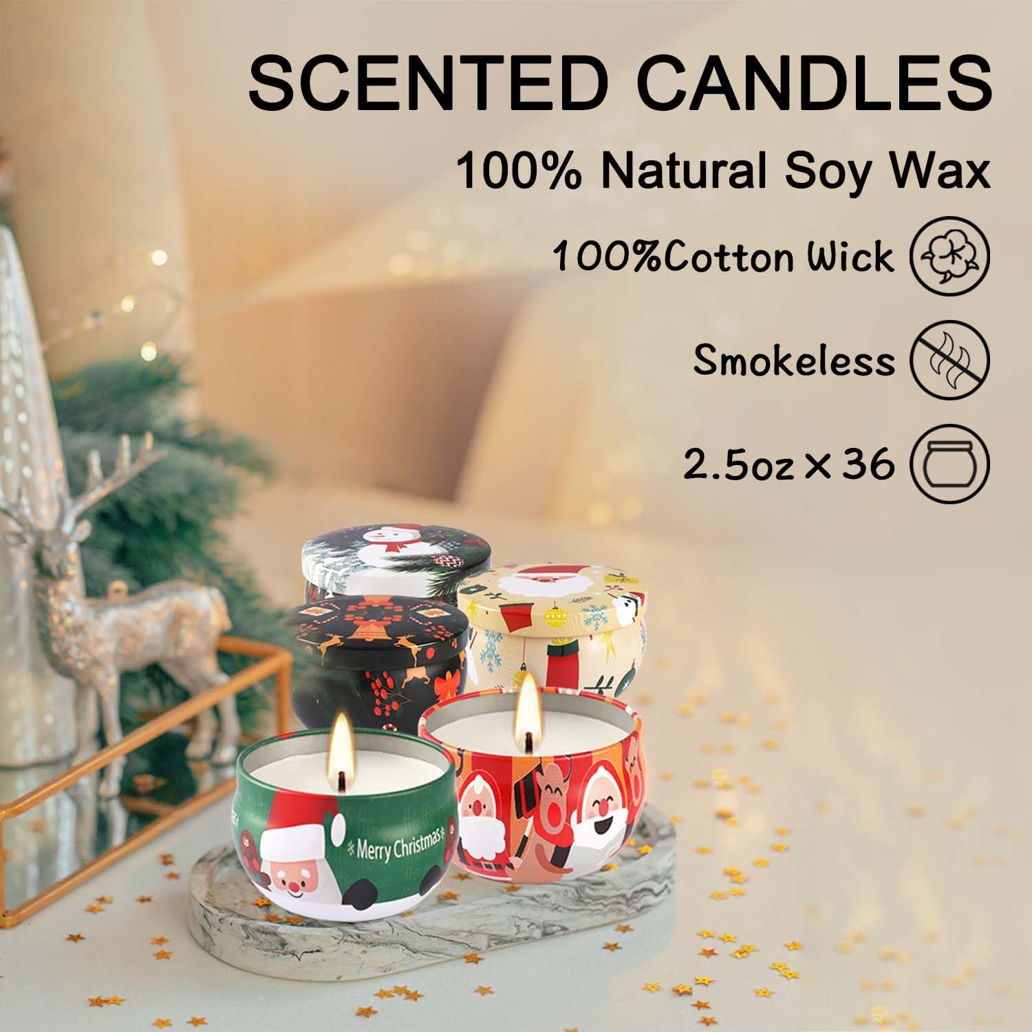 36Pack Christmas Scented Candles Sets,Long Burning,2.5oz Natural Soy Wax with Essential Oils Decorative Aromatherapy Candles for Christmas,Thanksgiving Gift, Home Scented