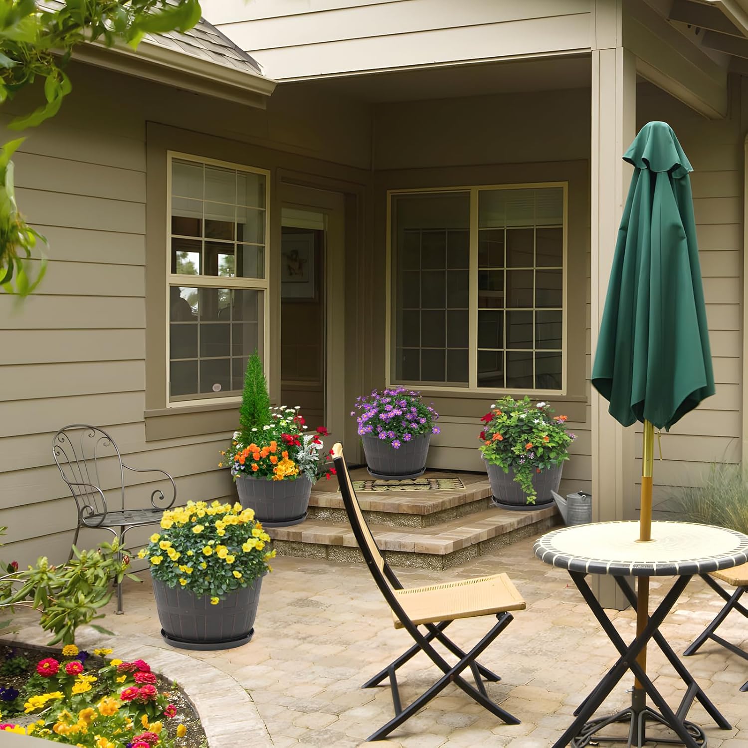 Quarut 12 Inch Large Planter Pot for Plants Indoor Outdoor, 4 Pack Plastic Flower Pots with Drainage Hole & Tray, Modern Decorative Garden Pot with Saucer, Plant Container for House(Brown)