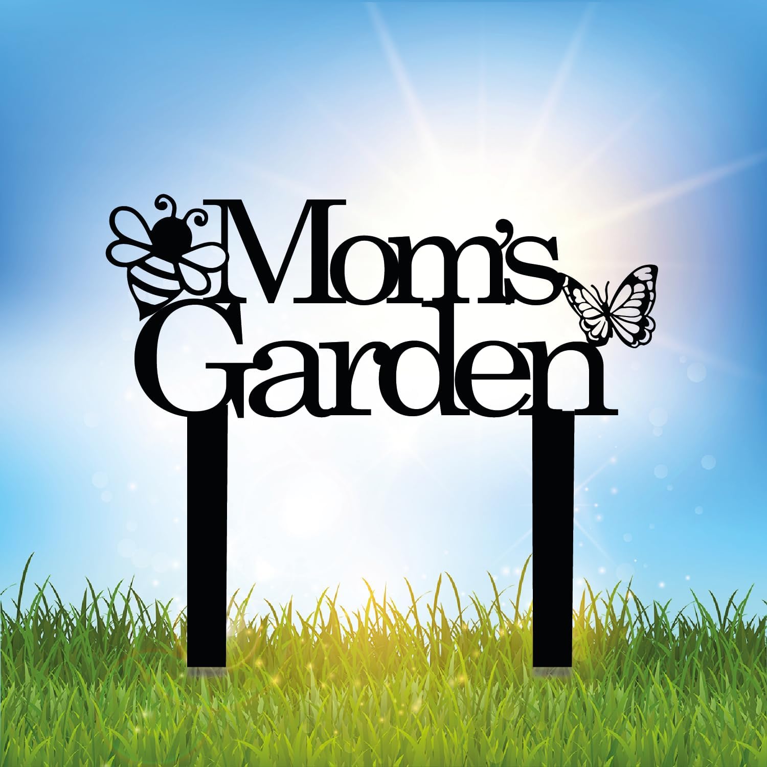Custom Patio Meta Sign with Stake, Bee and Butterfly Decoration, Farmhouse Yard Art - Personalized Gardener Name, Gift for Mom & Grandma