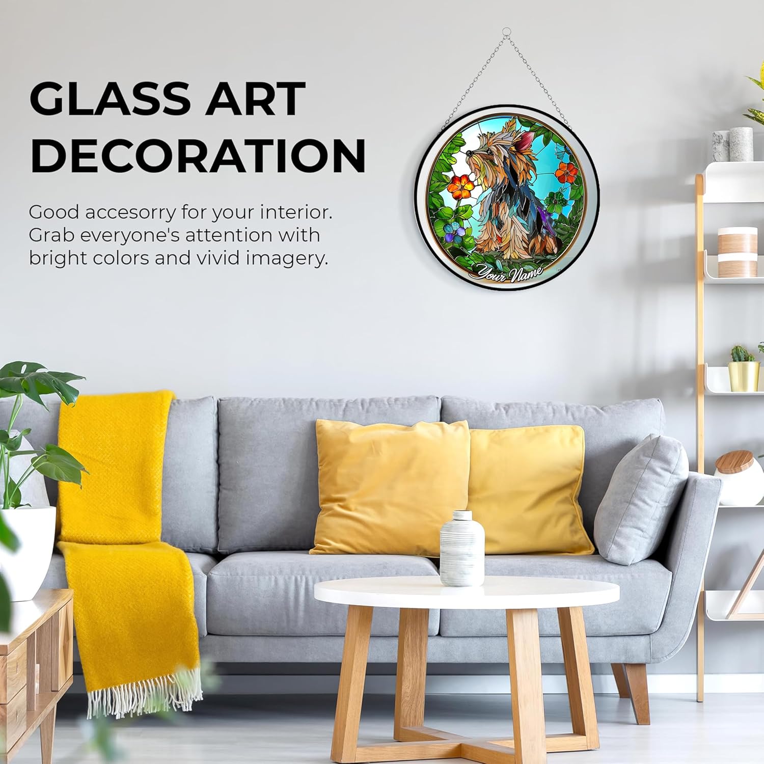 Customized Yorkie Stained Glass Suncather Window Hangings, Suncatchers Glass Panel Sun Catchers Gifts Home Decor Garden Christmas Halloween Wedding