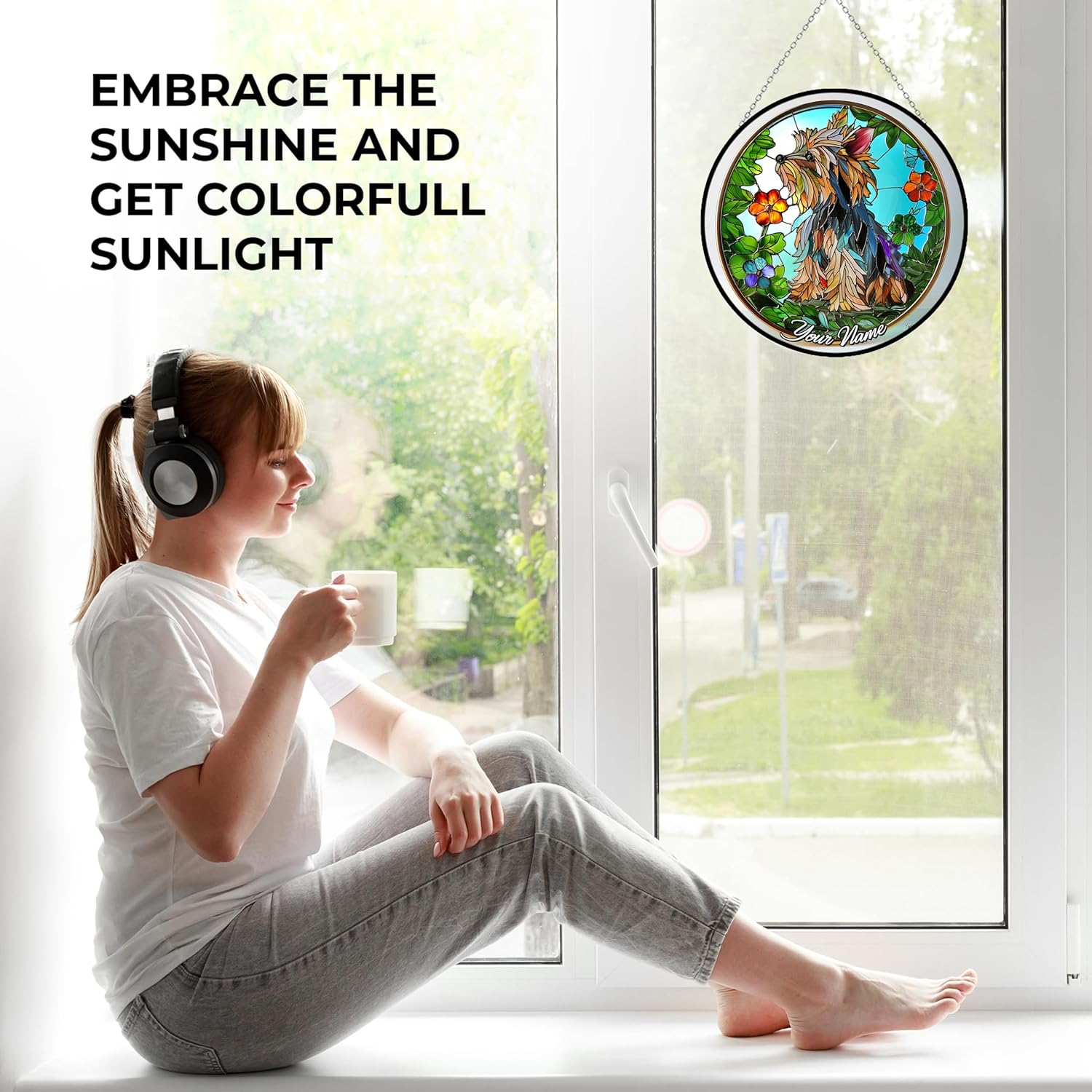 - [CUSTOMIZED GIFT] Our Custom Name yorkie sun catcher is ideal for gifting on birthdays, Mother's Day, Valentine's Day, Fall decor, Halloween, Christmas, Thanksgiving, New Year's Eve, anniversaries, housewarming celebrations, graduations, weddings, and any other special occasions. Click the “Customize Now” button, enter your name. Let's get started!