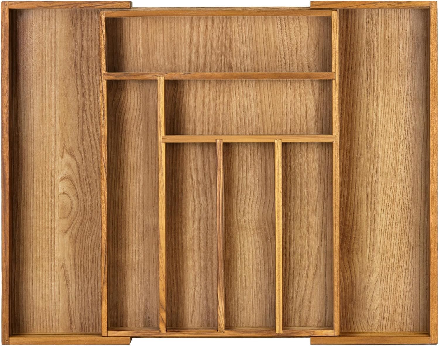 - Holds more Utensils: This teak silverware drawer organizer has 6-8 compartments, more compartments for sorting and organizing utensils, knives, spatulas, spoons and forks invisible in drawer
