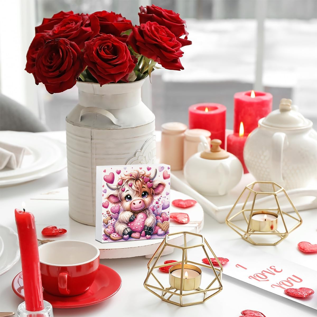 Valentines Day Decor Valentines Day Decorations Valentines Day Office Decor Valentines Day Table Decor Pink Valentines Day Decorations Valentines Decor Gifts for Girlfriend, Highland Cow Wooden Decor