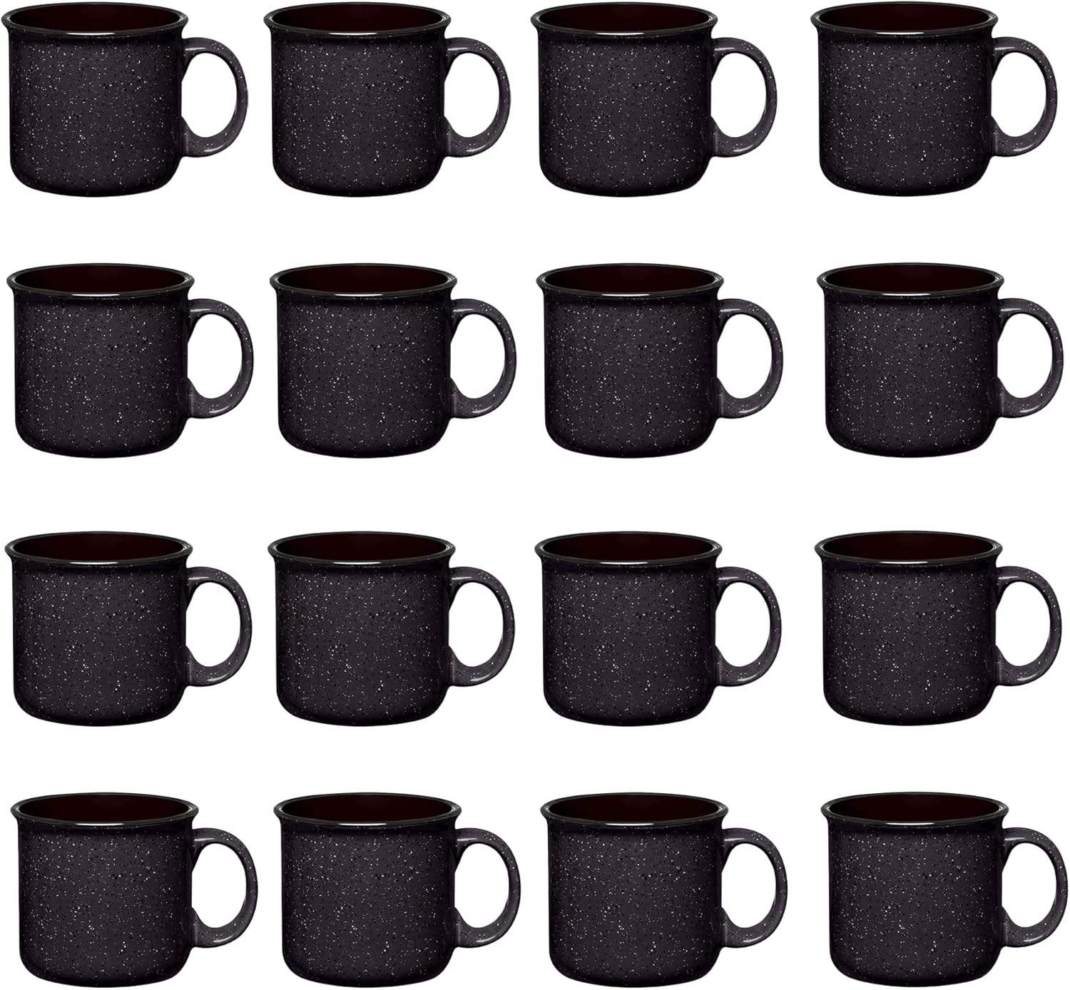 Set of 16 Ceramic Campfire Mugs – 15 Oz, Black – Coffee & Tea Cups for Home, Work, Travel, Camping – Customizable, Great for DIY, Events, Companies