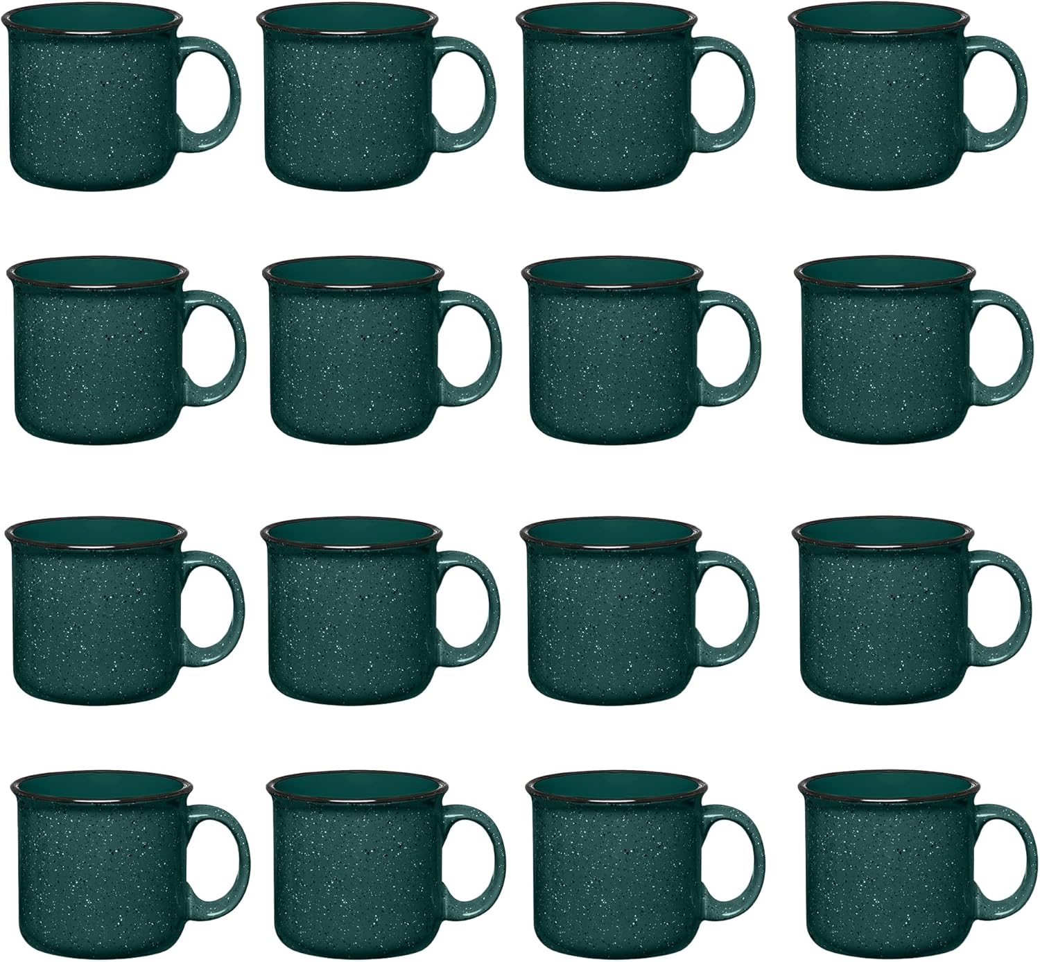 Set of 16 Ceramic Campfire Mugs – 15 Oz, Green – Coffee & Tea Cups for Home, Work, Travel, Camping – Customizable, Great for DIY, Events, Companies
