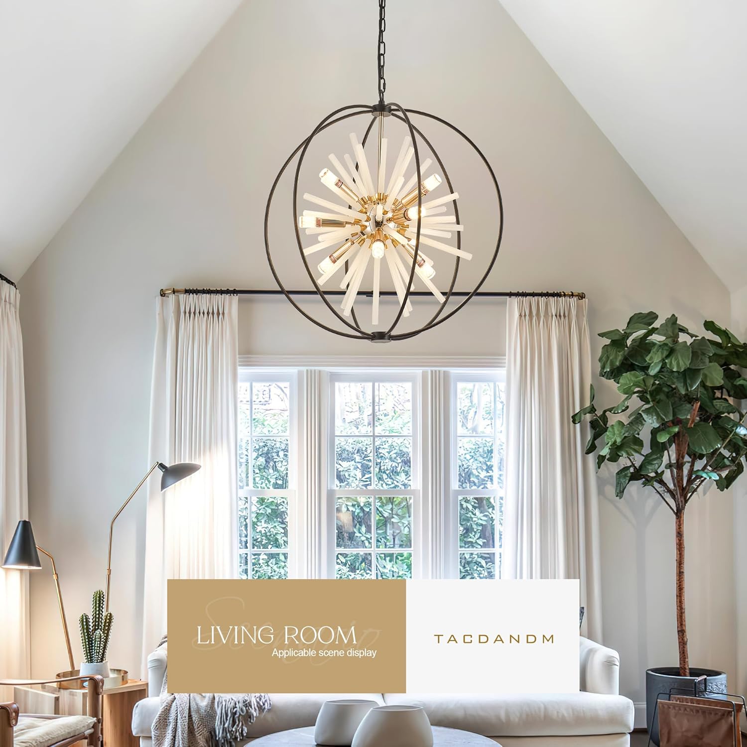 - 【Stylish Creative Design】Black Globe Sputnik Crystal Chandeliers advanced plating gold surface treatment and black metal sphere lantern, Crystal Glass Tube design, and simple 12 Lights, It can be dimmable when you used with a dimmable bulb and compatible dimmer switch. It is not just a light for lighting, but also an art for decorating, looks like fireworks. Discover a world of exquisite illumination with our modern chandeliers, where contemporary meets vintage in perfect harmony.