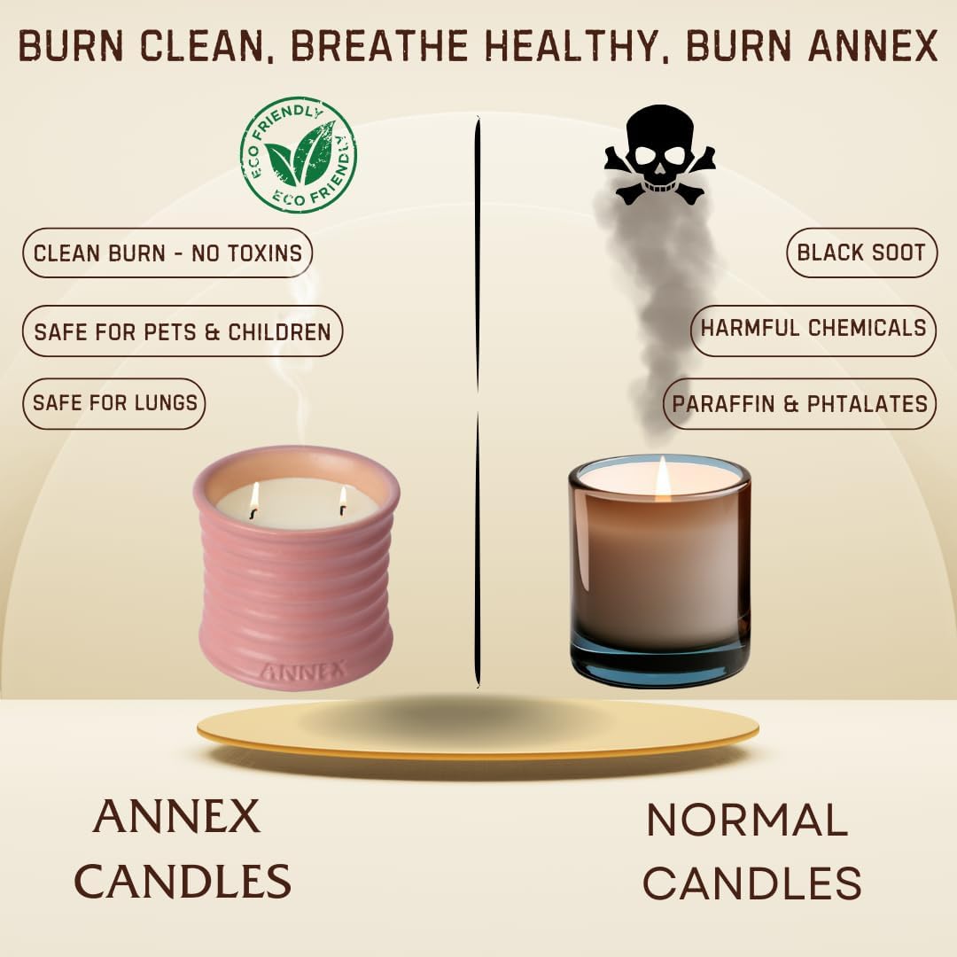 - 🕯️ HANDMADE SOY CANDLES WITH LUXURY SCENTS: Over 500,000 customers have enhanced their homes with Annex handmade soy candles for women. Featuring elegant scents such as lavender, vanilla, eucalyptus, peppermint, rose, sandalwood, and volcano. Designed to provide long-lasting fragrance in any space. Each candle is thoughtfully crafted with a clean burning of 50 hours with thoughtfully selected ingredients.