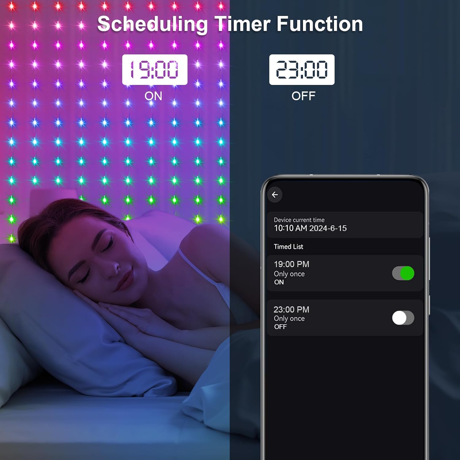 - Voice Control: Easily control the curtain lights ON/ OFF, brightness, and color changing with Alexa, Google Assistant. Enjoy hands-free control to create a smart lifestyle