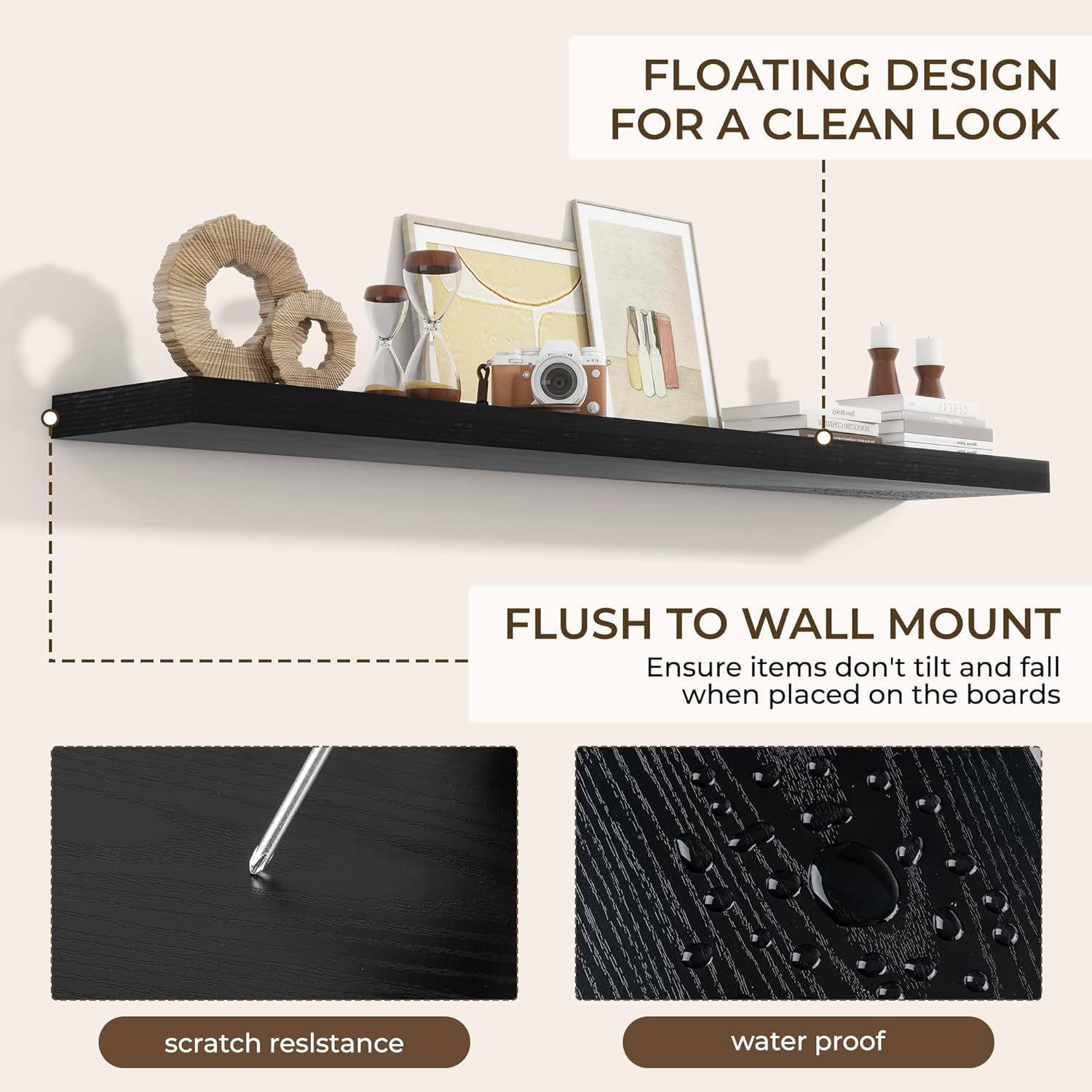 RICHFOCUS 72Inch Floating Shelves for Wall 2 Pack Shelves for Bedroom|Kitchen|Bathroom Wall Mounted Rustic Wood Floating Shelf with Invisible Brackets for Books|Storage|Decor, Black