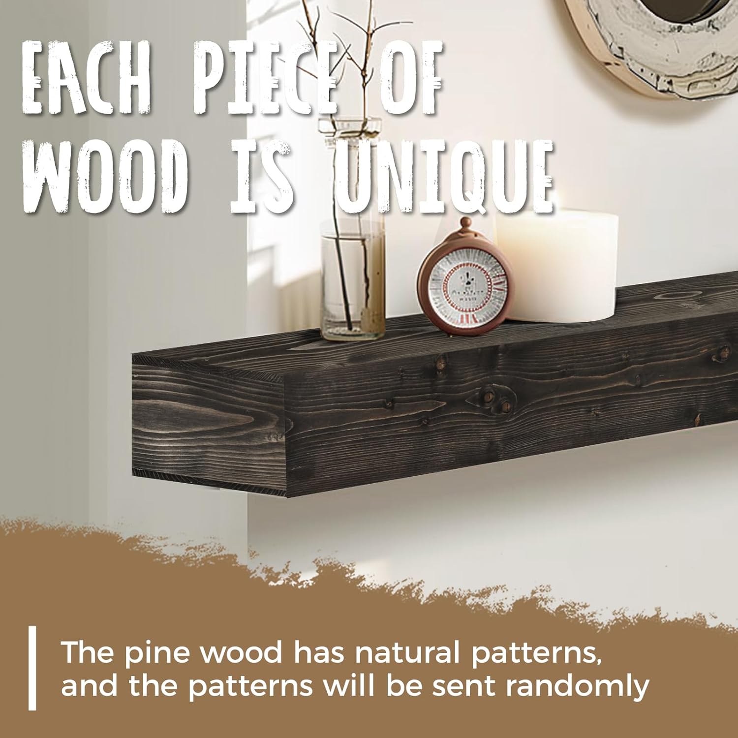 - Wall-Mounted Design: The fireplace mantels feature an elegant floating design, offering a clean and tidy appearance, making them the perfect choice for displaying decorations or storing daily items. These mantels are not only furniture, they are a lasting investment in the beauty of natural wood, carefully processed to suit your home even better