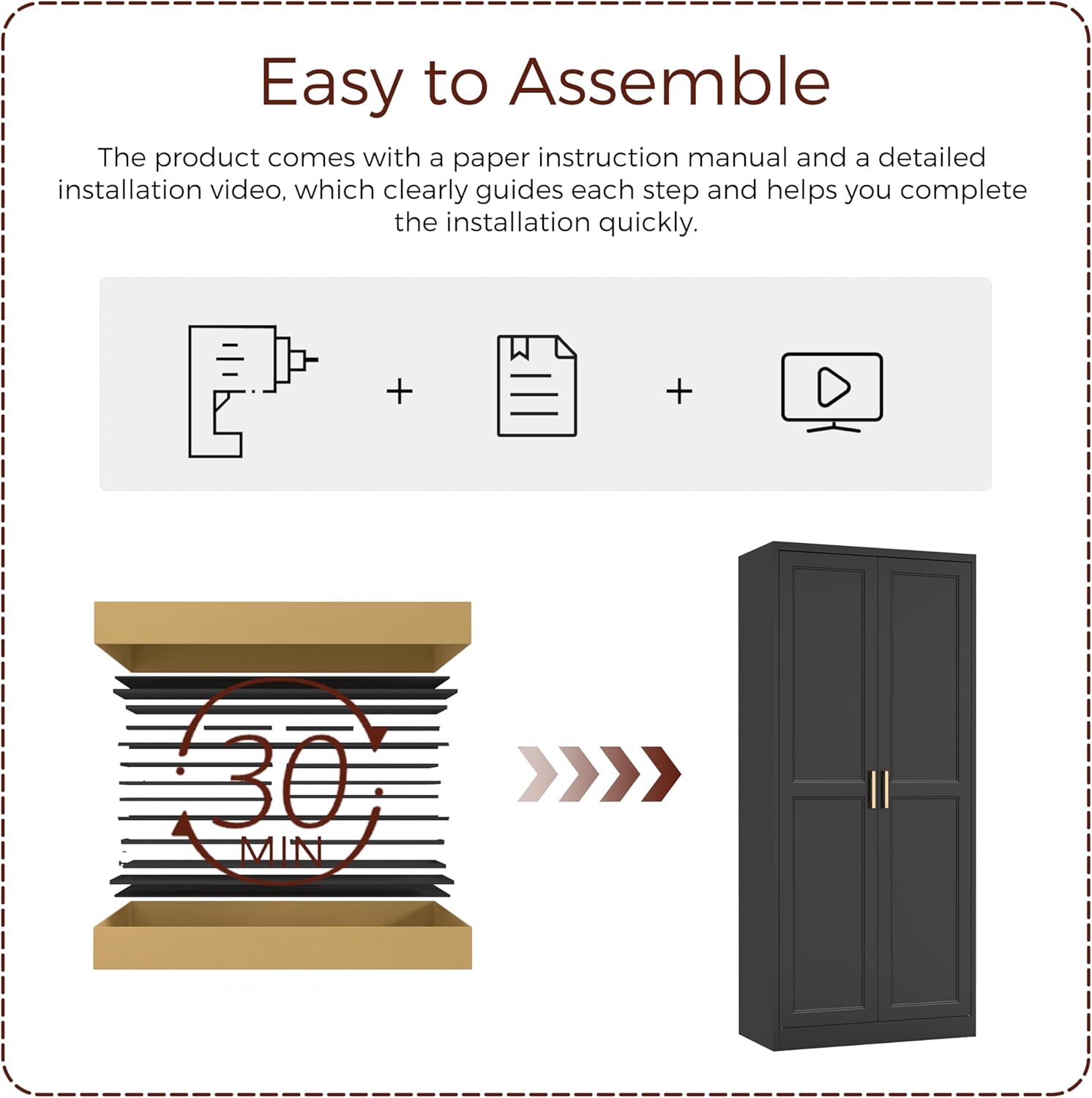 - 【Secure and Stable Design】 For added safety, the black pantry cabinets with doors and shelves includes an anti-tipping device and a wall anchor kit to prevent accidents. This secure design ensures stability, whether used in busy home environments or offices.
