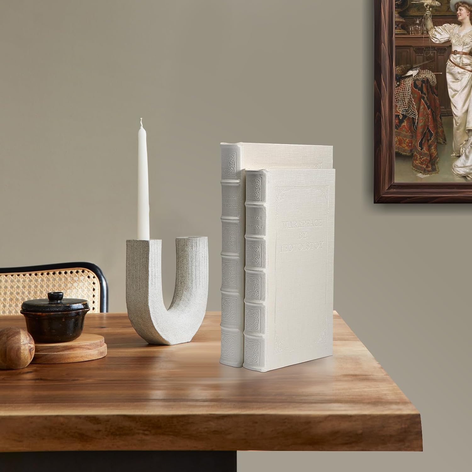 Decorative Books with White Faux Leather,Decorative Book Box for Home Decor, Display,Coffee Table Books Decor,Hotel Home Bookshelf Décor Book (YD-C104 L+S)