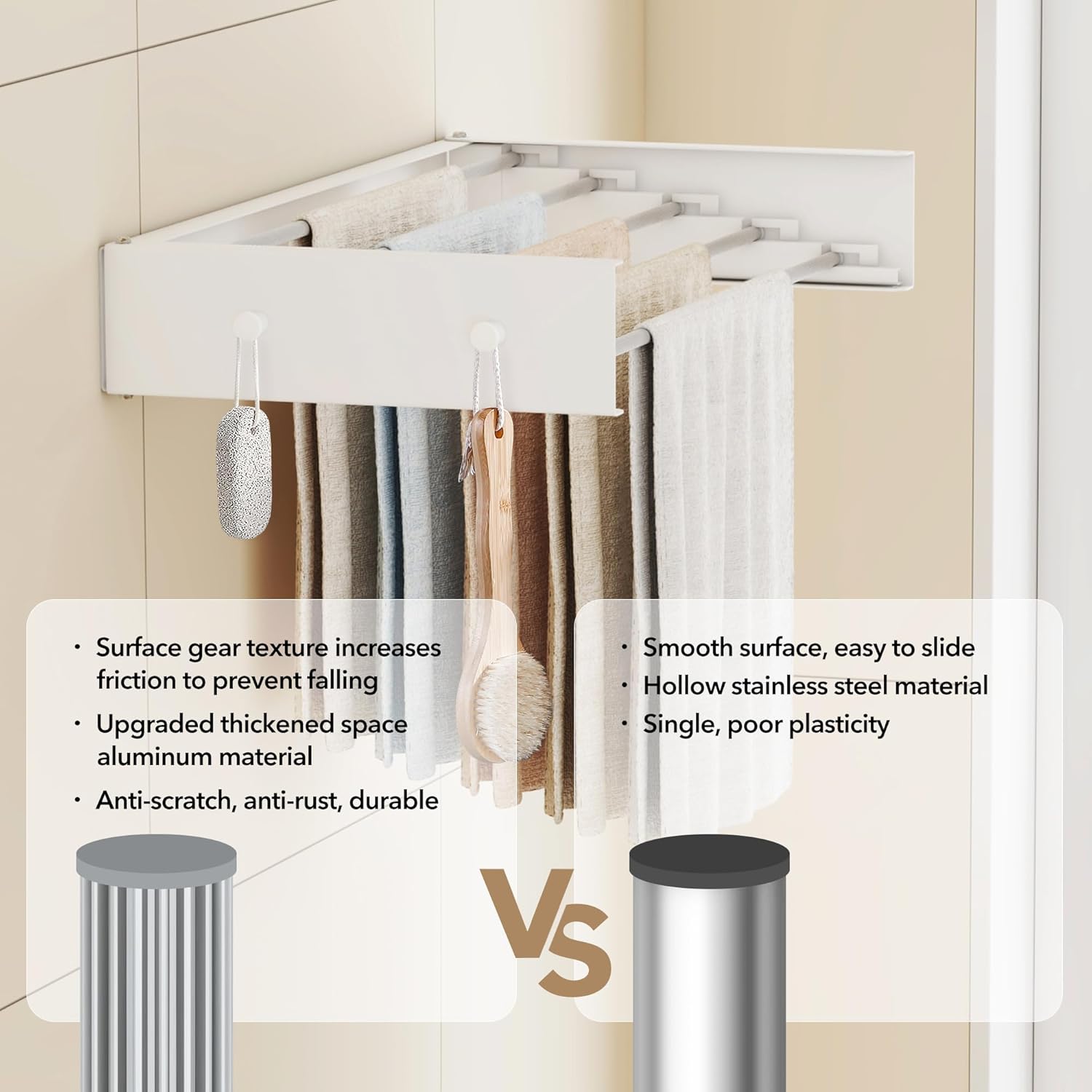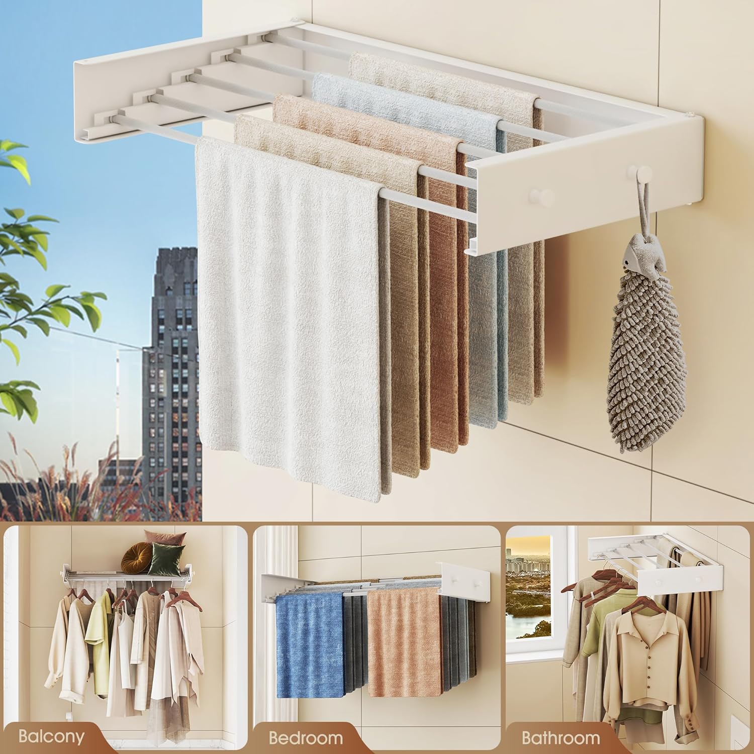 Upgrade Wall Mounted Clothes Drying Rack, 31.5 Inch, Foldable, Collapsible, Retractable, White