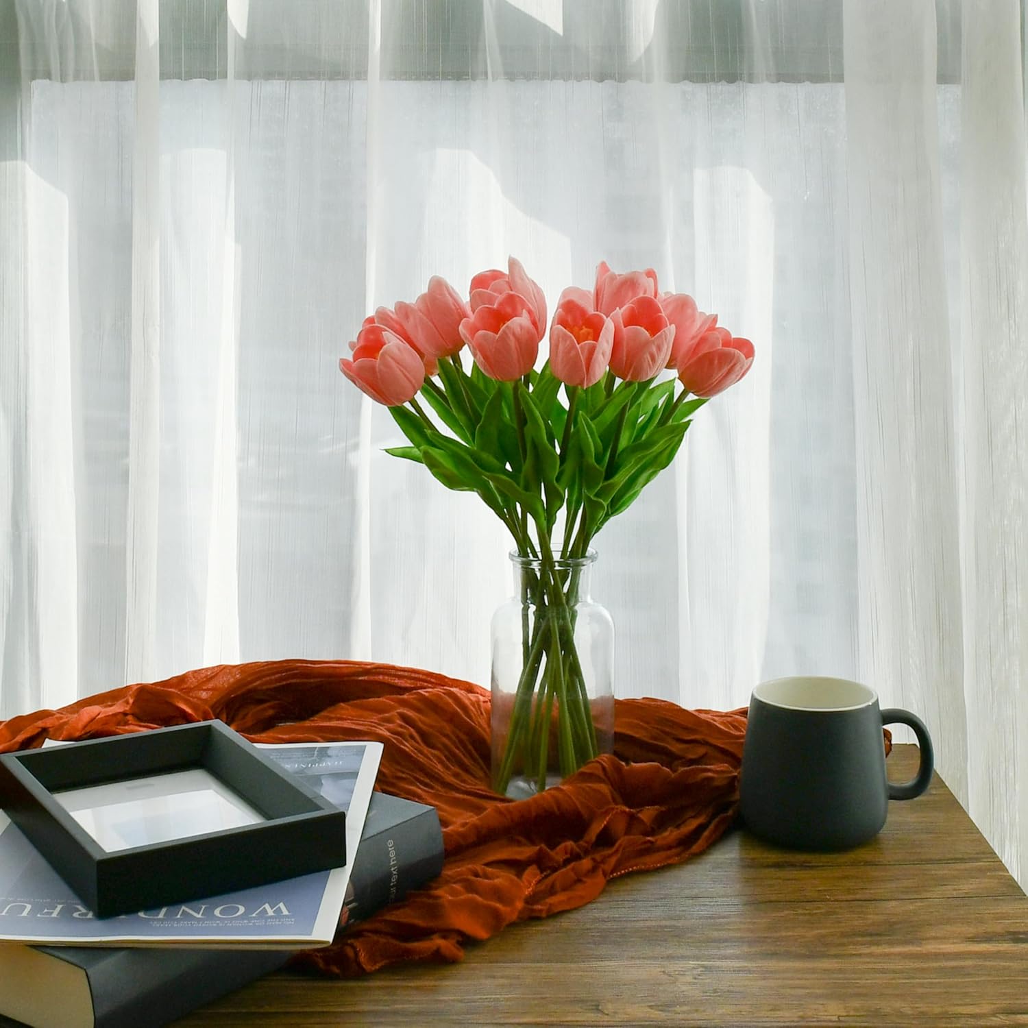 - All-Season Beauty with Gentle Color Care.These tulips bring timeless charm to Easter, Mother’s Day, weddings, or year-round décor. To preserve the soft tones of light-colored flowers—especially white—we recommend avoiding direct sunlight for long-term (6+ months) display, as PU petals may naturally yellow over time.