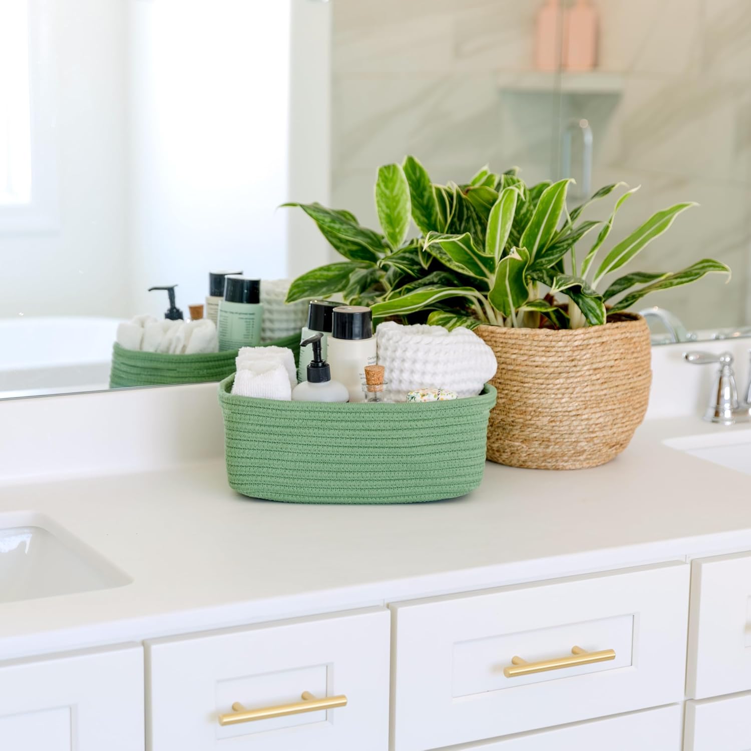 • Safe, Natural Cotton Organizer Bins: Crafted from the highest quality material in the market, our storage bins are oh-so-sturdy (and cute) and ready to take on little humans. They’re 100% safe, so you can rest easy if teething toddlers take a nibble. Reinforced Hidden Handles: Now you see ‘em, now you don’t! With completely hidden handles that blend seamlessly into the rope basket, you’ll be the Houdini of home organizing. They’re even double-stitched and reinforced for extra heavy loads!