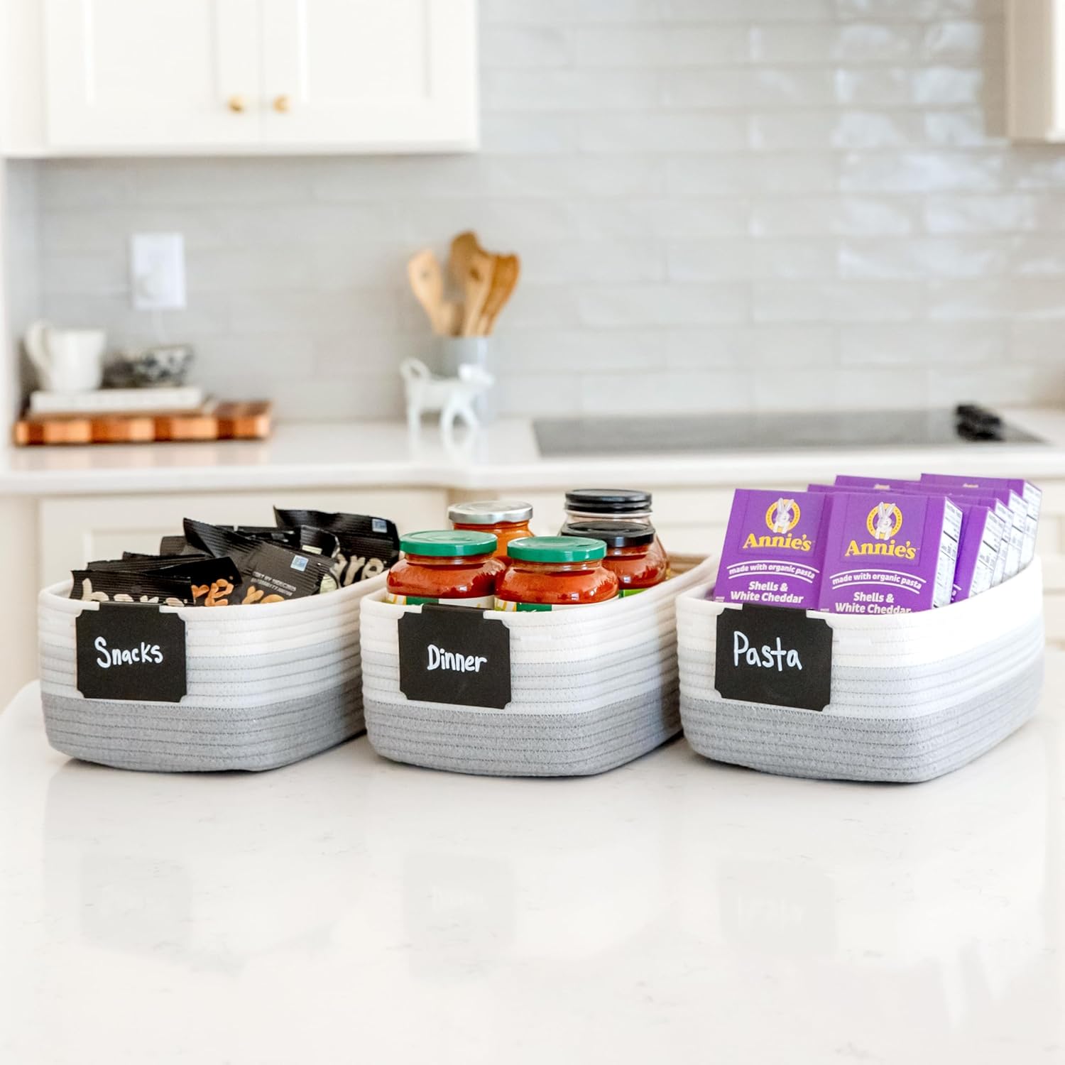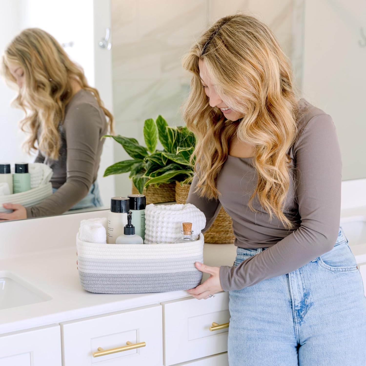 • Safe, Natural Cotton Organizer Bins: Crafted from the highest quality material in the market, our storage bins are oh-so-sturdy (and cute) and ready to take on little humans. They’re 100% safe, so you can rest easy if teething toddlers take a nibble. Reinforced Hidden Handles: Now you see ‘em, now you don’t! With completely hidden handles that blend seamlessly into the rope basket, you’ll be the Houdini of home organizing. They’re even double-stitched and reinforced for extra heavy loads!
