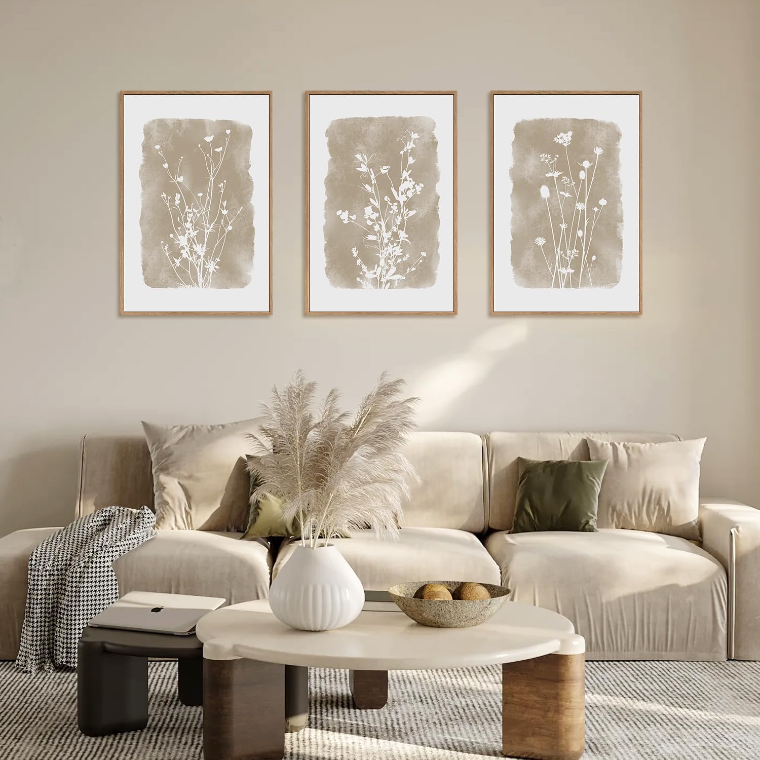 HPINUB Large Boho Wildflowers Canvas Framed Wall Art Set,Minimalist Vintage Flower Wall Decor,Beige Floral Botanical Artwork for Living Room Bedroom,Dining Room,Office -24"x36"x3