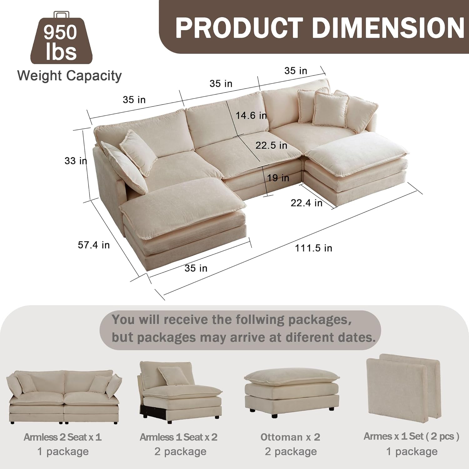 - Premium Comfort & Customizable Sizing: Available in 146.5" U-Shape, 146.5" L-Shape, 111.5" U-Shape, 111.5" L-Shape, and 76.7" L-Shape, this modular sectional sofa adapts to any room size. Featuring ultra-plush 5-layer chenille cushions with high-resiliency foam, it offers cloud-like softness whether lounging, sitting, or napping. Perfect for living rooms, apartments, offices, or dorms.