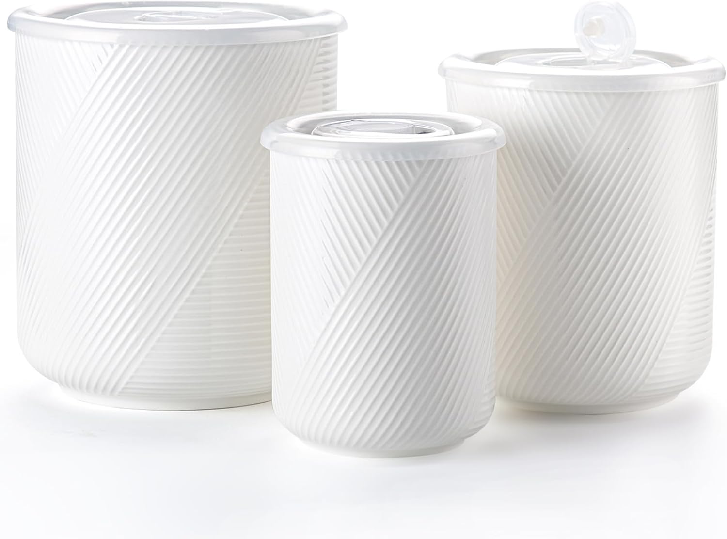 Food Storage Containers with Airtight Lids: Ceramic Canister Sets for Kitchen Countertop - Porcelain Jar for Coffee Tea Flour Sugar Rice Cookies Candy - White (23+42+75 oz)